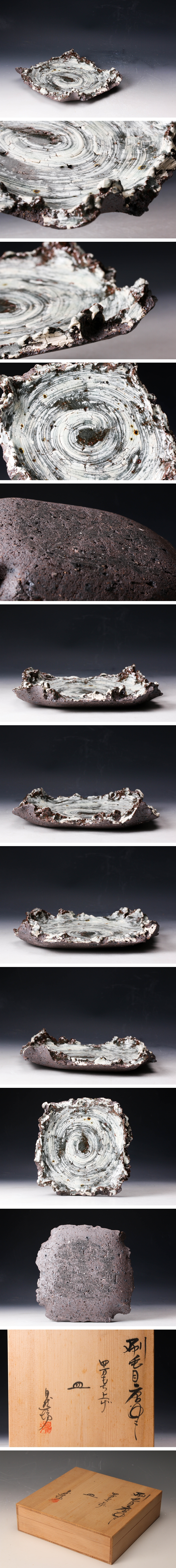 【佳香】中川自然坊 刷毛目唐津四方もち上げ皿 共箱 本物保証
