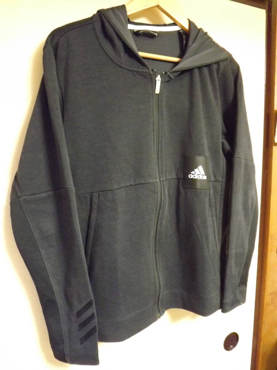 こちらはアディダスのフルジップフードパーカーになります。サイズはM表示で、実寸サイズは身50.5センチ、肩幅44センチ、袖丈54センチ、着丈64センチ位です。中古品ですが、まだまだご使用いただけます。発送は東京からレターパックプラス(600円)になります。いかがでしょうか?