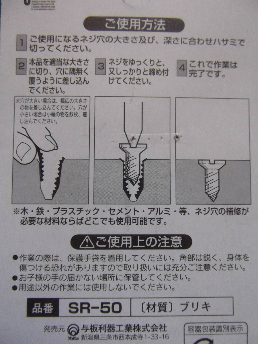 送料110円~◆ネジ穴補修キット SR-50【1枚】穴バカ/ボルトのぐらつき/与板利器工業 ハンズクラフト HANDSCRAFT