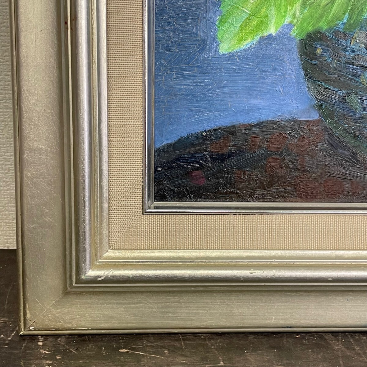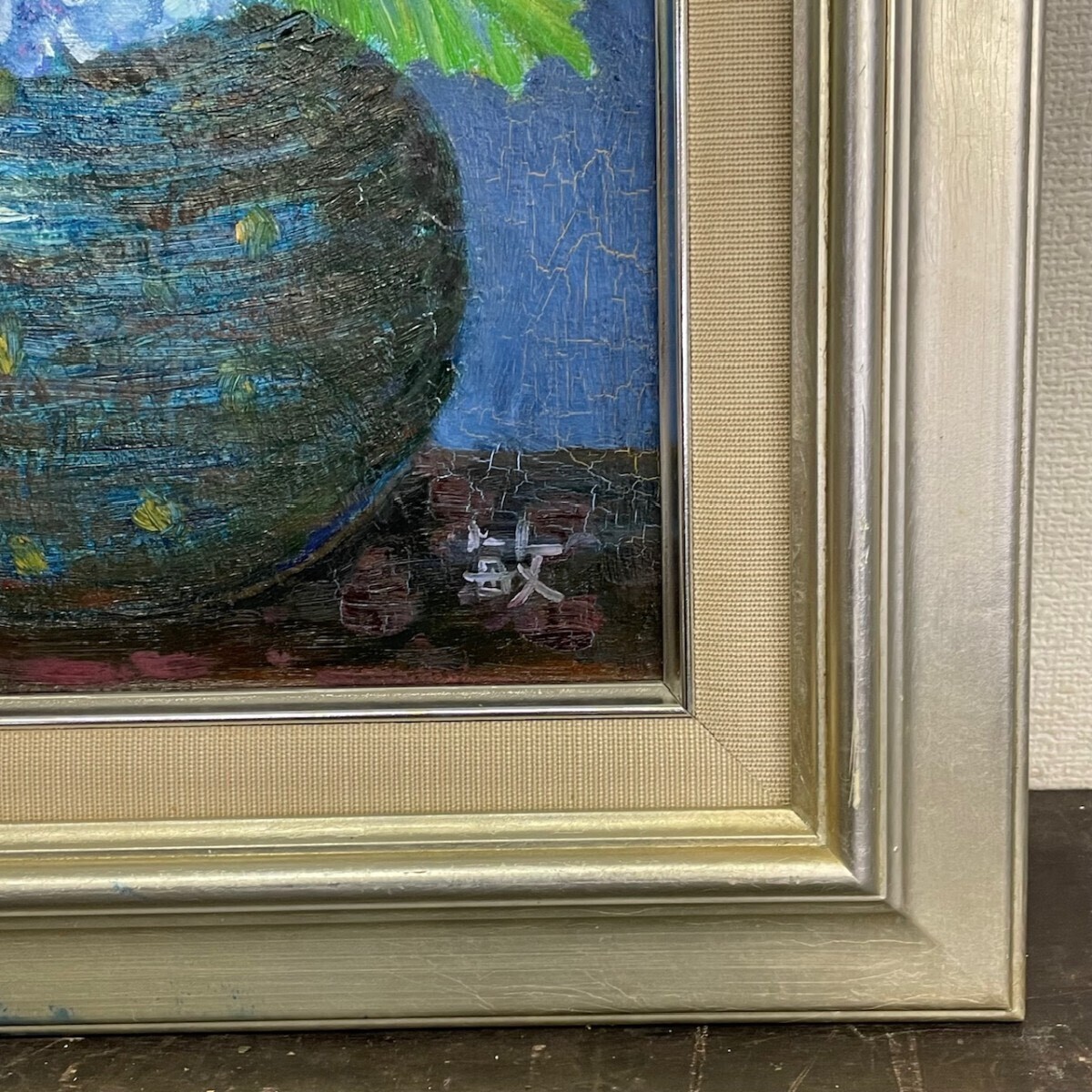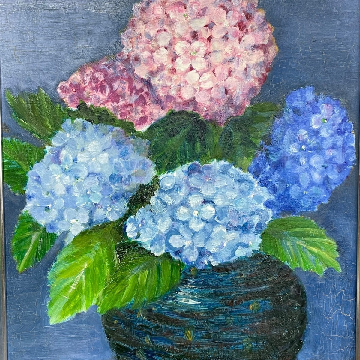 作者不詳 敏『紫陽花』 直筆サイン入り F3 油絵 静物画 額装 縦約56cm×横約47cm