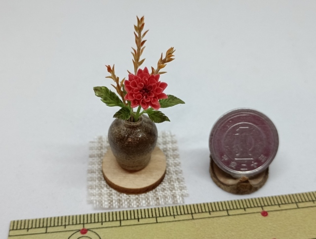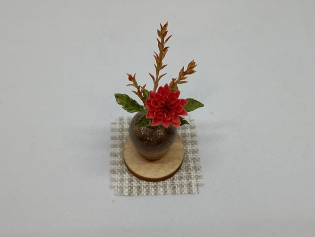 ダリア・枝ものを製作し、自作花器に生けてみました。
