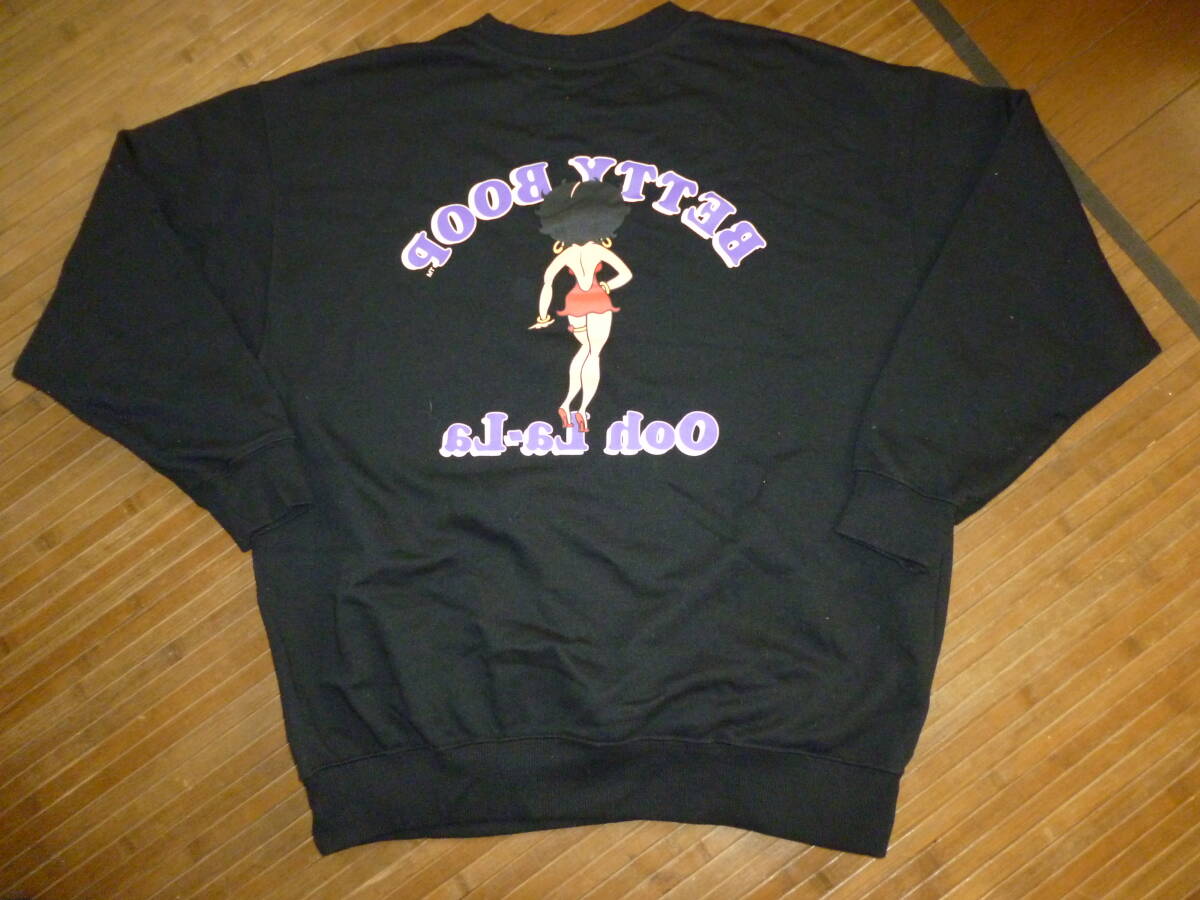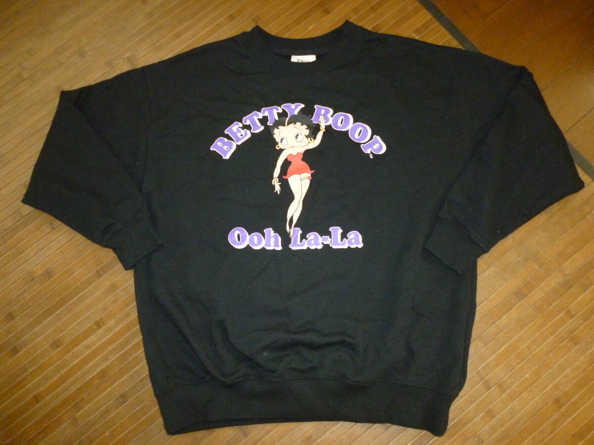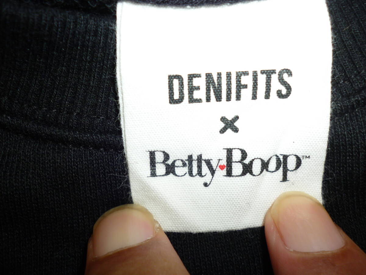 1037-68♂♀:DENIFITS×BettyBoop デニフィッツ×ベティーブープ 長袖トレーナー Size.M 色.黒