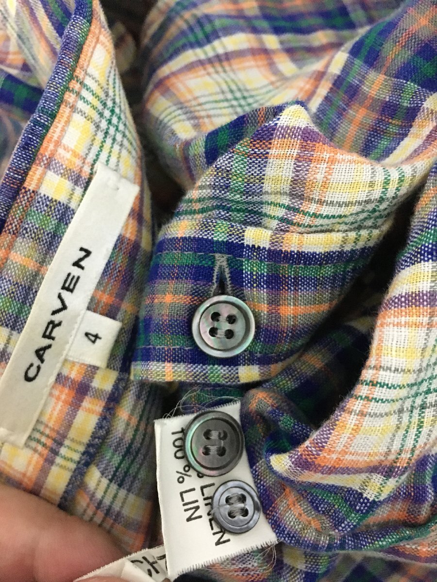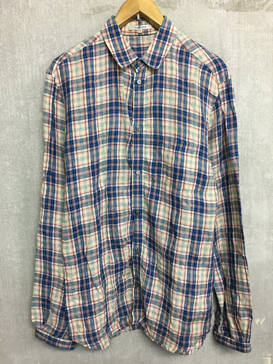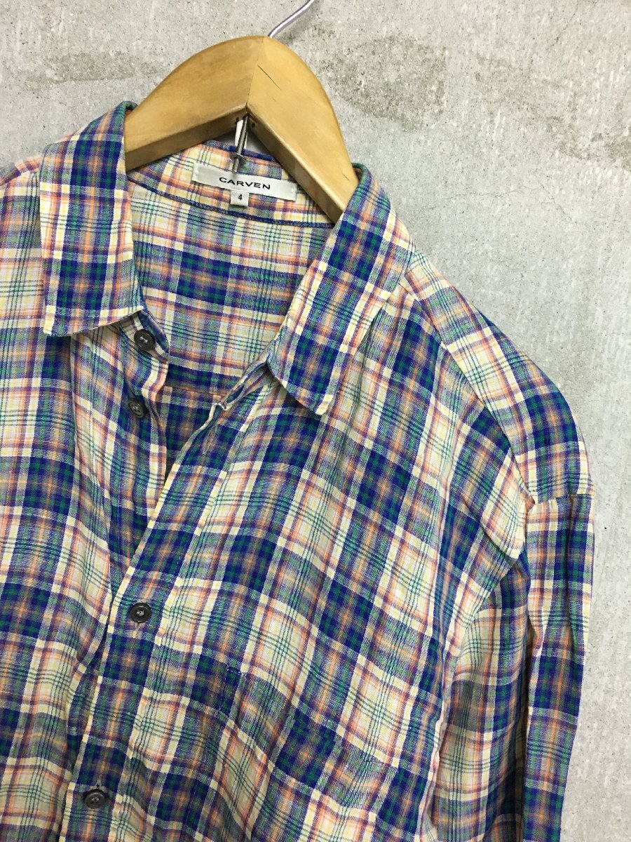 ◆CARVEN カルヴェン リネン チェック オーバーサイズ シャツ ブルーピンク サイズ4 美