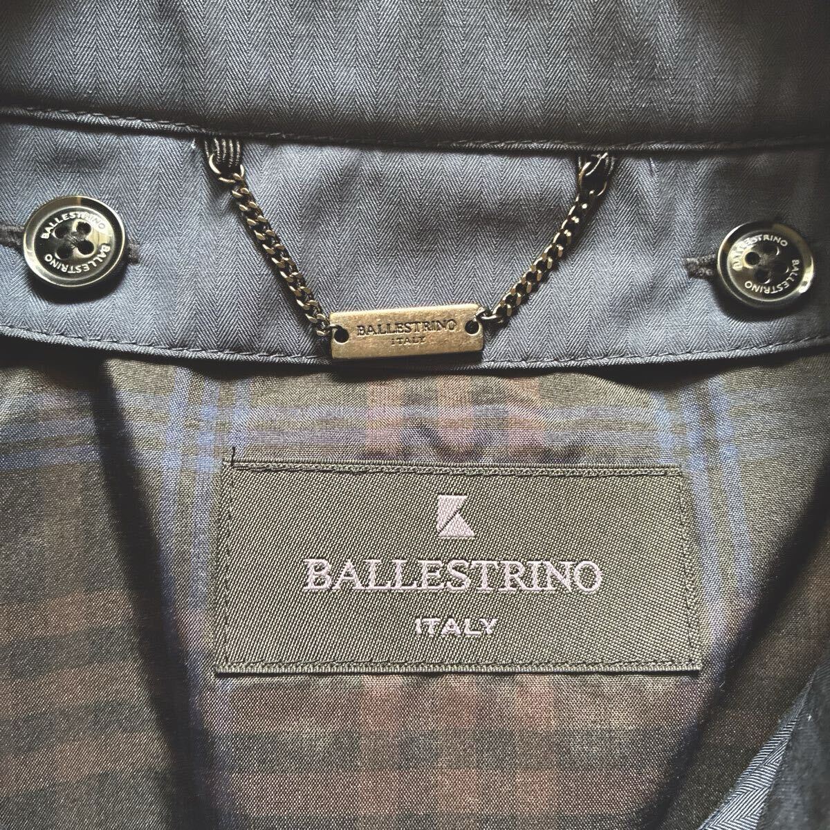 | 極美品 ダウンライナー付 ステンカラー ハーフコート BALLESTRINO ビジネス ネイビー サイズLL | |||