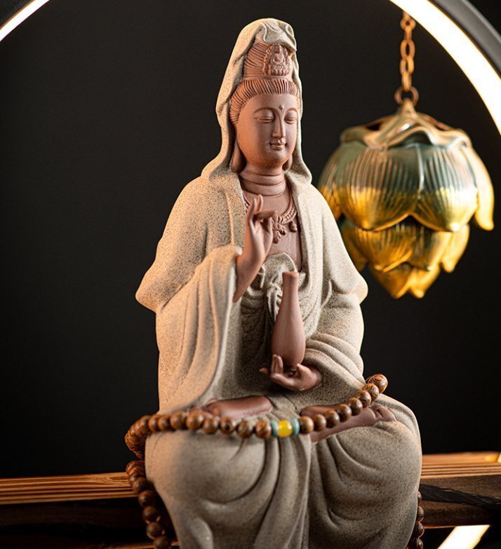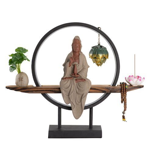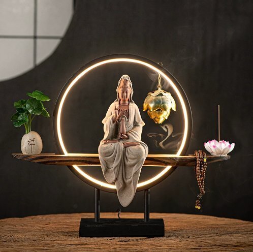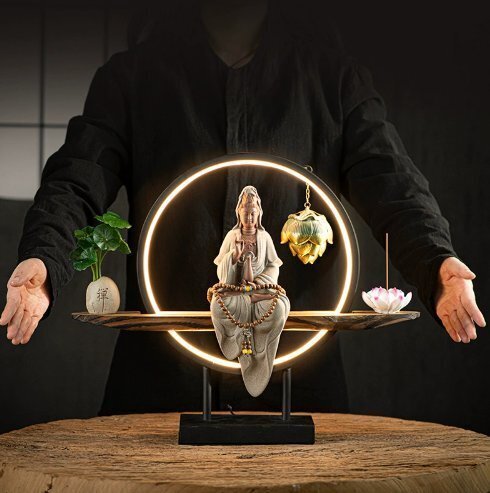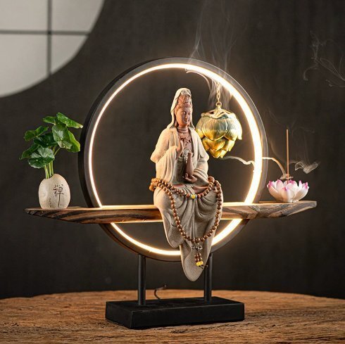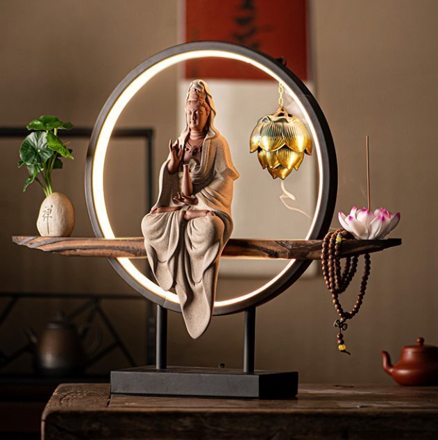 禅意灯圏観世音菩薩仏像置物アイデア巻き戻し香炉家庭客間玄関装飾