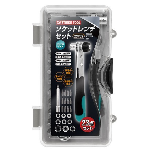 ソケットレンチ 23点セット ネジ ボルト ナット 手動 整備 バイク 車 修繕 家具 緊急時 備え 家電 工具 DIY 送料無料 5M◇ ソケットレンチ
