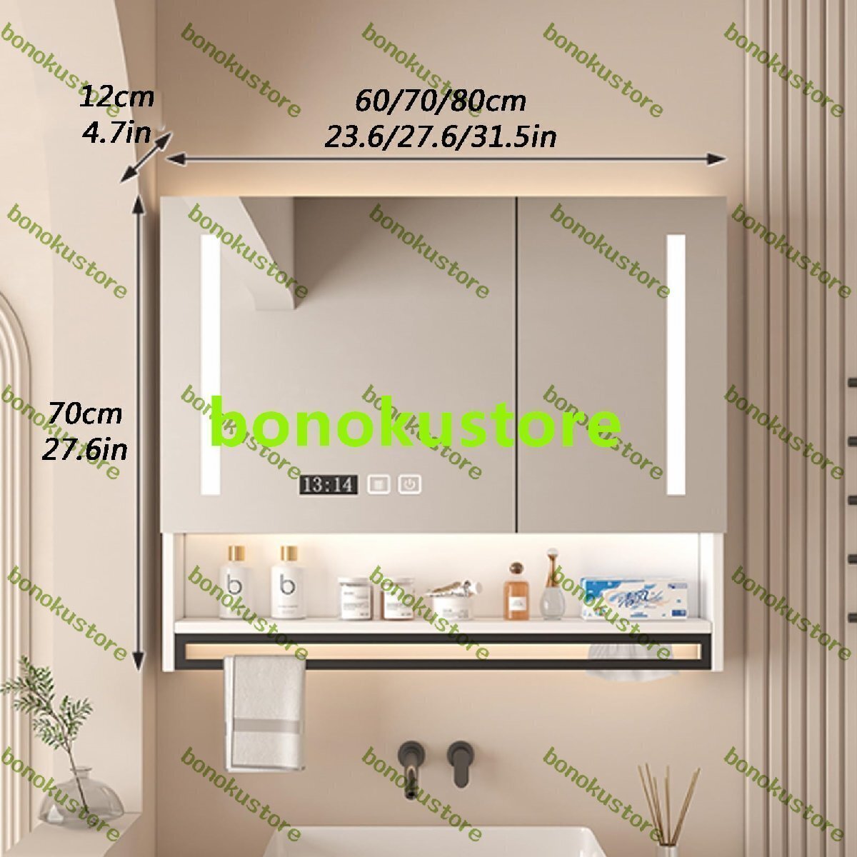 洗面所鏡タッチコントロール 洗面 化粧台LEDライト付き 洗面化粧台 ミラーキャビネット 浴室 ミラー 曇り止め ミラーキャビネット 洗面所 照明付き 浴室の壁のキャビネットタオル掛け付き 現代の知性浴室キャビネット (Color : Black Size : 60*12*70cm/23.6*4.7*27.6in)