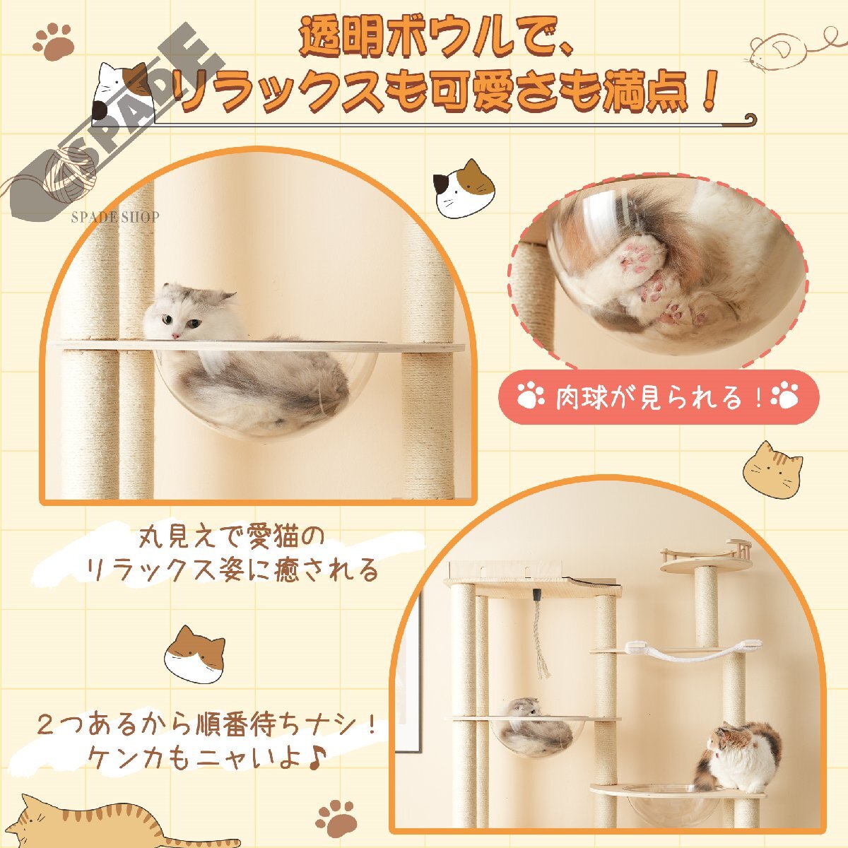 • ②【2つの透明宇宙船で癒しと可愛さをダブルに満喫】リラックス姿も肉球も丸見え!クリアなボウル型ベッドは写真映え抜群。2つあるからケンカ知らず、仲良く順番待ちナシでくつろげるのも嬉しいポイント。
