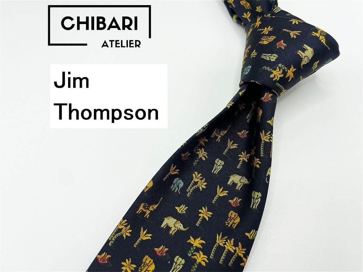 【超美品】Jim Thompson ジムトンプソン ゾウさん柄 ネクタイ 3本以上 送料無料 メンズ ブラック 1001083