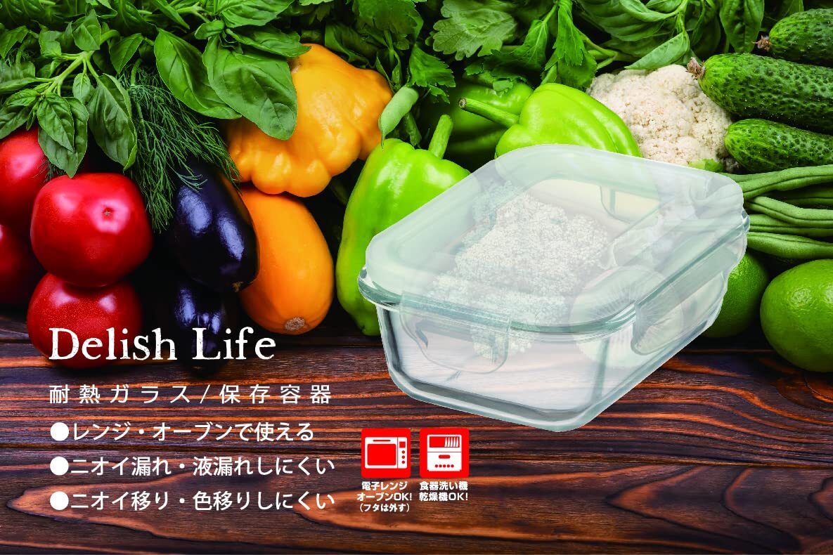 説明 ●シリコンパッキン付の4面ロックで密封度抜群、汁物も安心です。 ●耐熱ガラス製でニオイ移り・ニオイ漏れしにくい。 ●作りおきして、そのまま器として食卓に。 ●中身が見えるから冷蔵庫を整理できます。 ●電子レンジ・オーブン・食洗器で対応。(冷凍は不可) ●本製品は、一般家庭用に販売しておりますので、高出力器具(業務用)のレンジ・オーブンには使用できません。 ●ご使用上の注意 ●ヒビ割れ等の不具合がないことを御確認ください。 ●電子レンジ・オーブンで使用される場合は必ず蓋を外した状態でご使用ください。 ●直火では使用できません。 ●中身のない状態、又は極端に少ない状態で加熱しないでください。 ●冷凍保存は出来ません。 ●完全密封容器ではありません。食品などの長期保存には適しません。 ●オーブンは、直接炎がでるタイプのものでは使用しないでください。 ●急激な温度変化を与えると割れの原因となります。 ●調理後本体が熱くなっておりますので、ミトン等をご使用ください。またテーブル等へ置く時は鍋敷きを敷いてください。 ●熱い食品を保存する際は、よく冷ましてから蓋をしてください。 ●ご使用後のお手入れ ●研磨剤入りたわし、金属たわしやクレンザーなどを使用しないでください。 ●汚れがひどい場合は、台所用漂白剤等をご使用ください。 ●パッキンの洗浄の際は、蓋から外して中性洗剤で洗ってください。 ●洗浄後は、十分乾燥させてから保管してください。 ●蓋の取り扱いについて ●蓋は完全密封ではありません。傾けた状態での保存は避けてください。 ●色の濃い食材や、合成着色料を含んだ食材から色・ニオイが付く場合があります。 ●持ち運ぶ際は、蓋を持たないでください。必ず本体(ガラス)を持ち、安定した状態で運んでください。