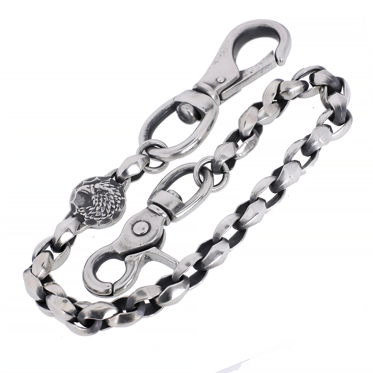 ジャーマンシルバー ウォレットチェーン オリジナル 最高級 燻し加工 白銅 イーグル輪つなぎ