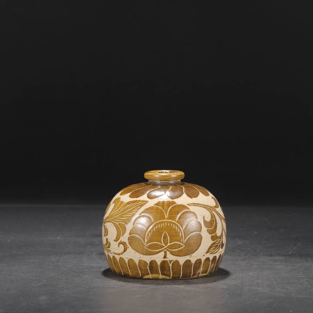| 人間国宝 古磁器 白磁【北宋磁州窯褐彩剔花石榴瓶】 工芸品 陶芸 磁器 置物 收藏品 時代物 中国美術 | |||