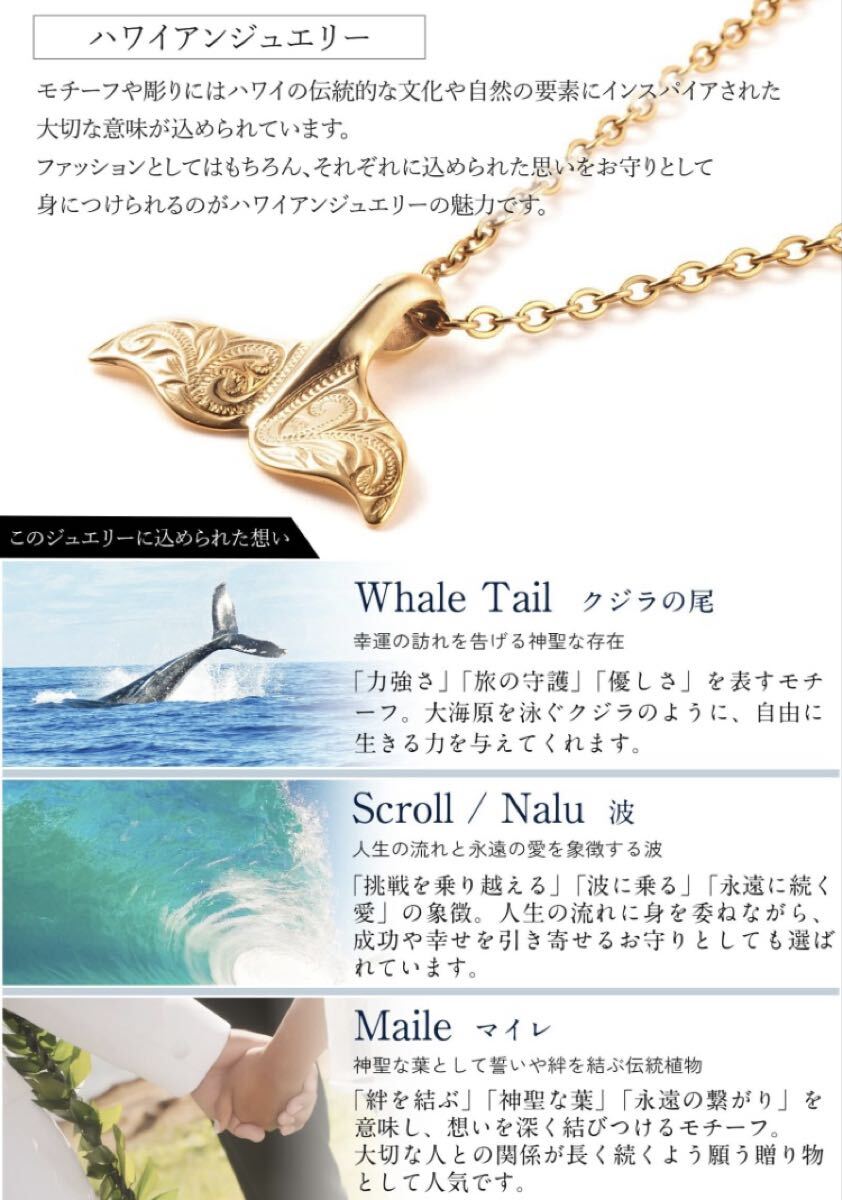 クジラの尻尾をモチーフにしたチャームにハワイの文化や自然の要素にインスパイアされた伝統的なデザインが特徴です。