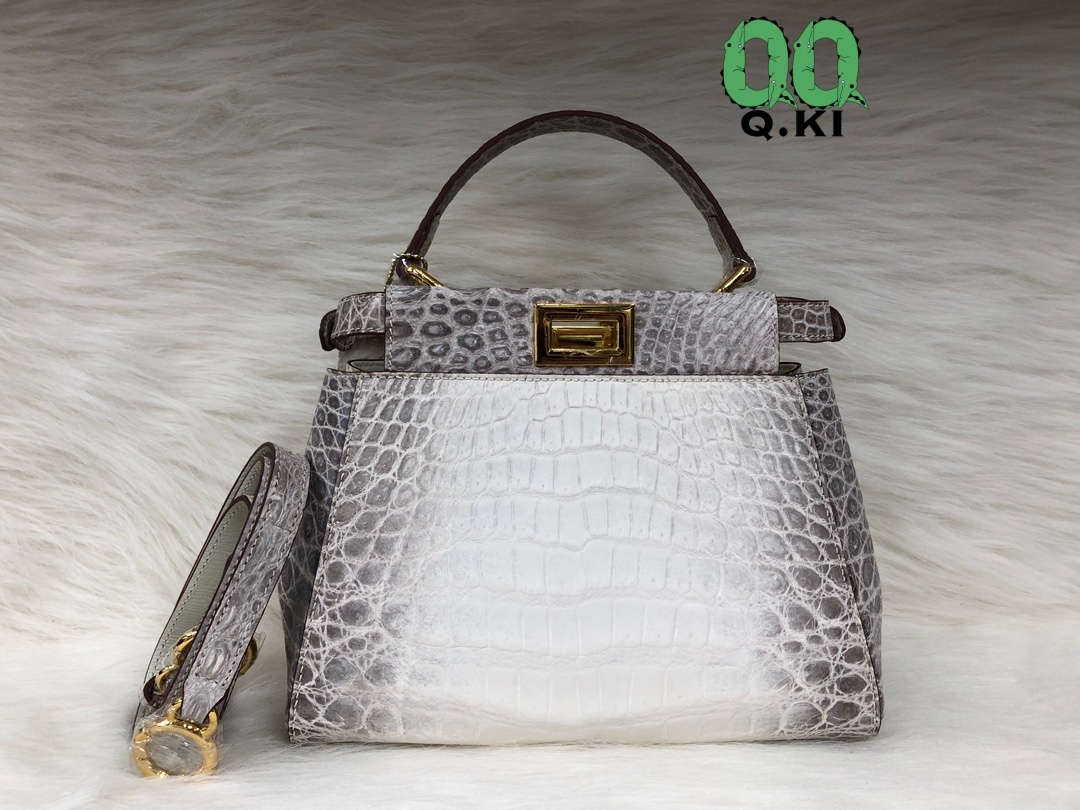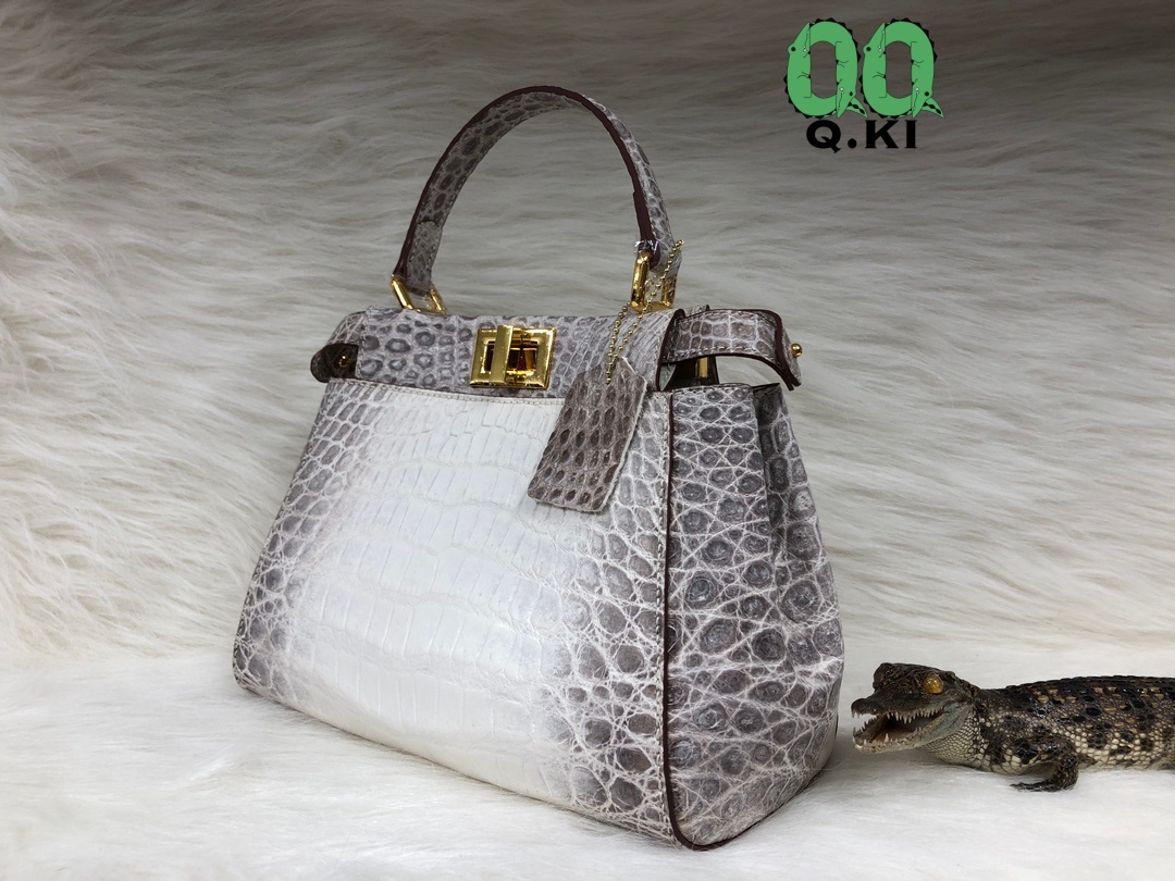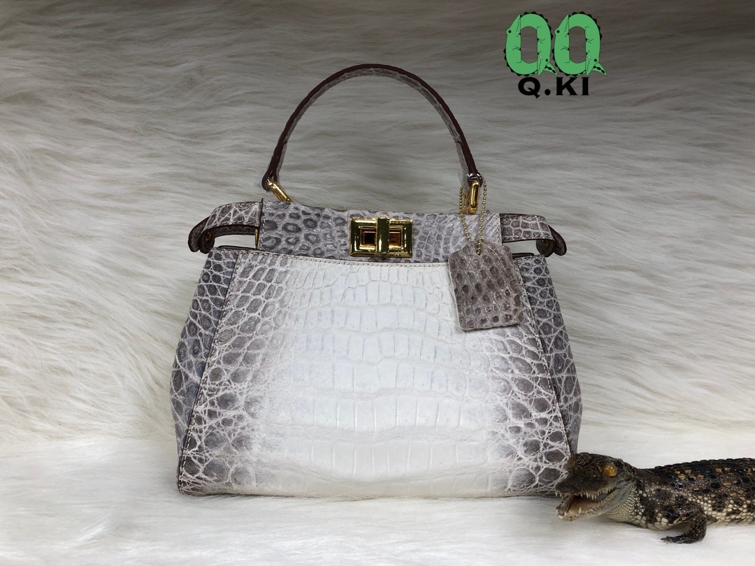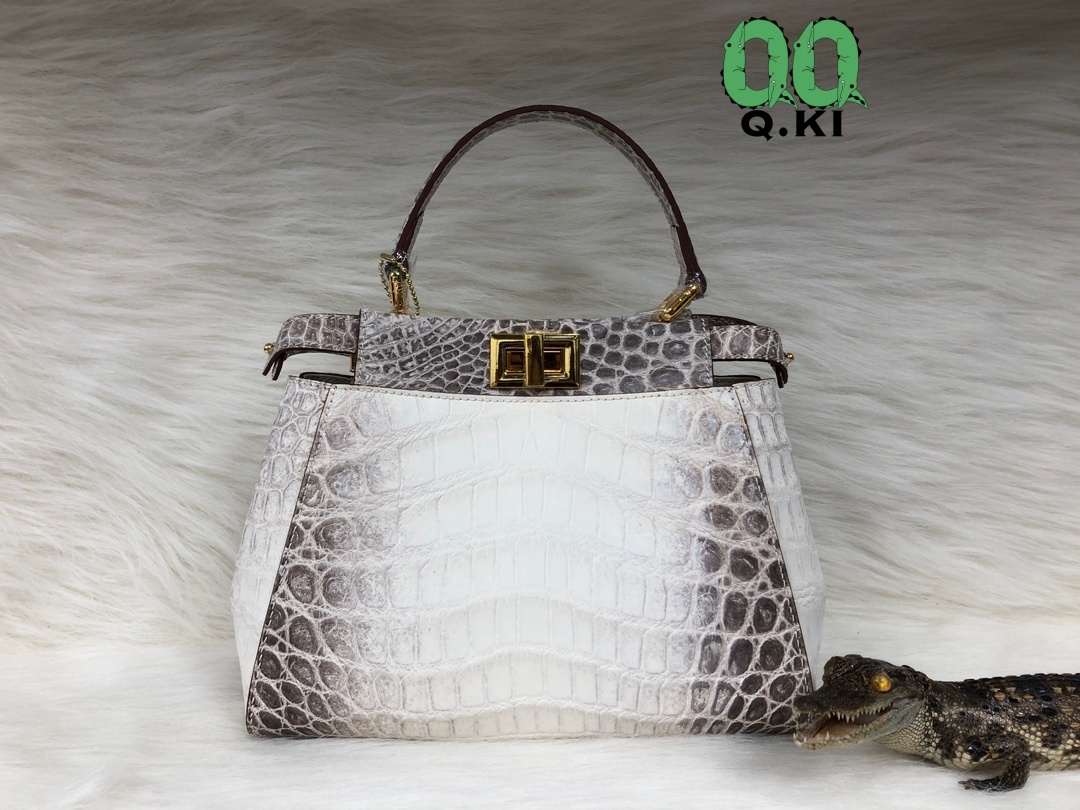 売り切れ最後 ヒマラヤホワイト クロコダイル レディースバッグ ハンドバッグ ワニ革 本物 肩掛け ショルダーバッグ 腹革 センター取