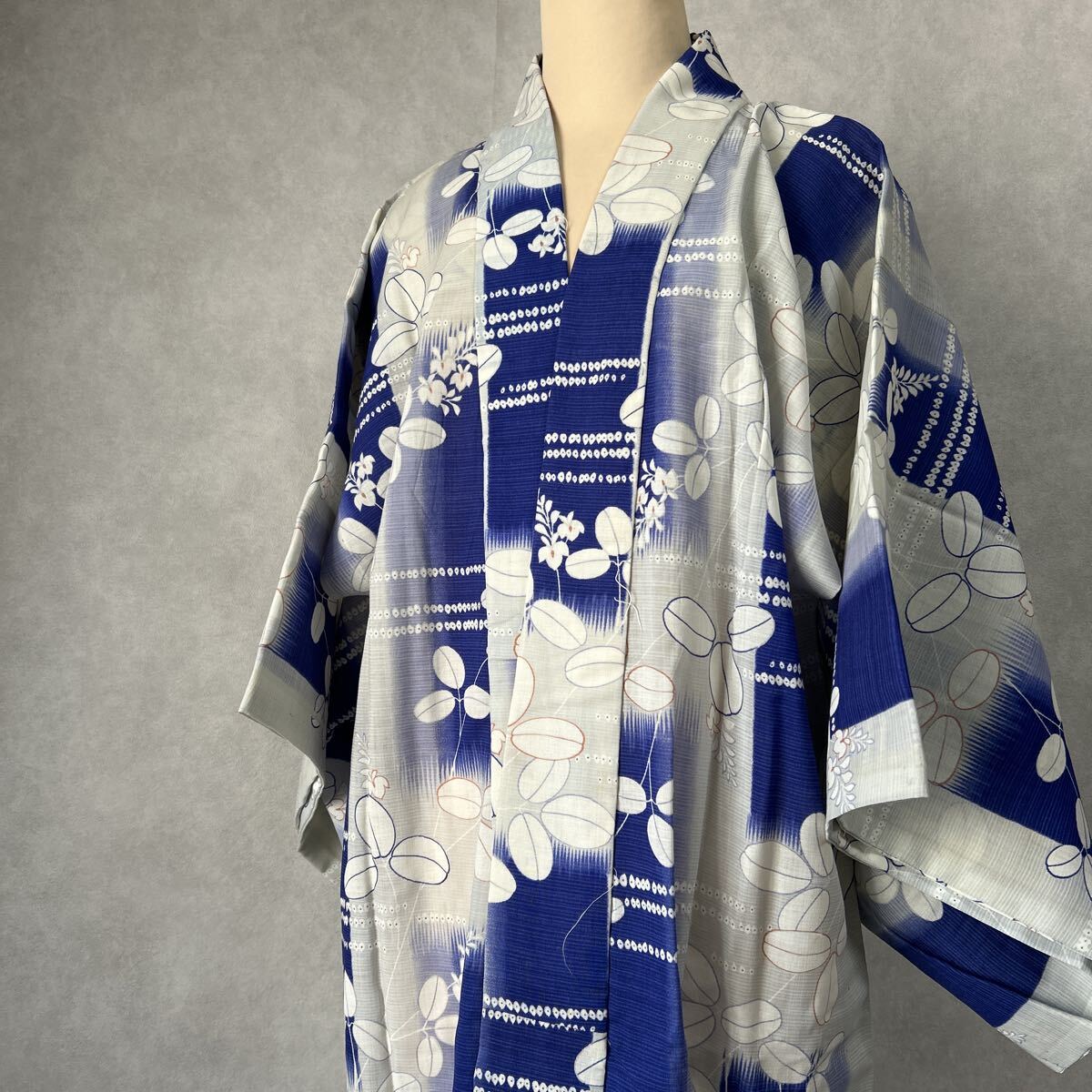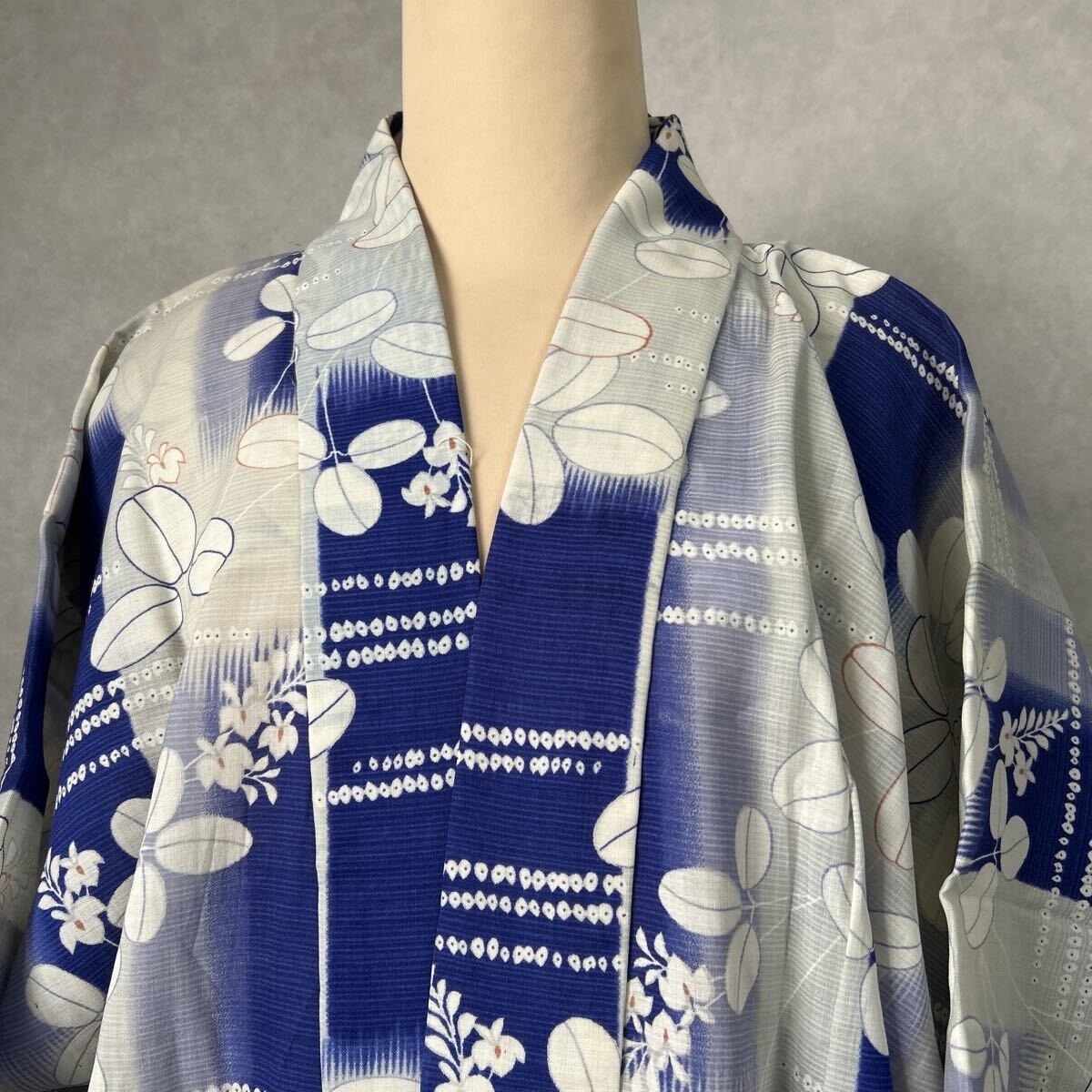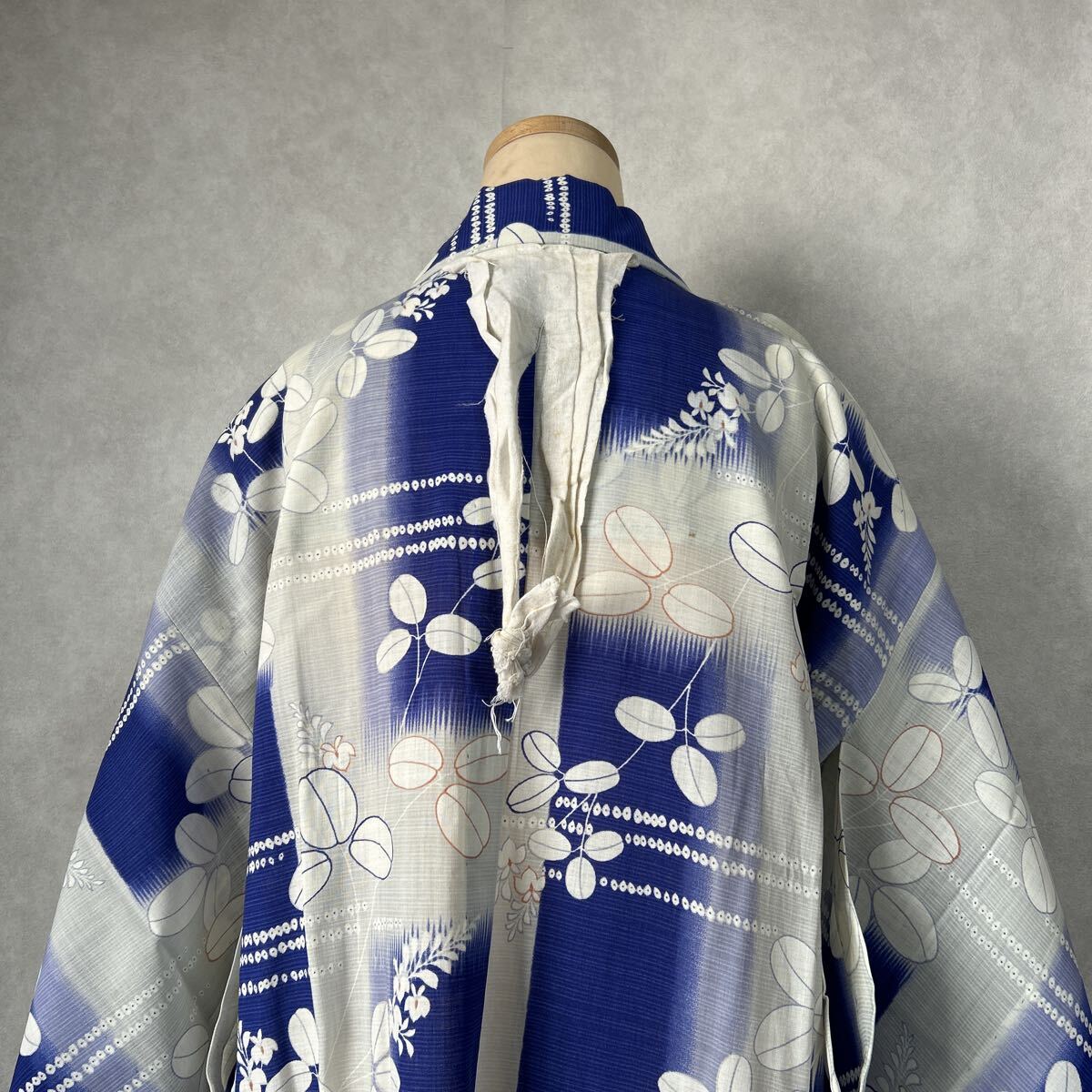 長襦袢 白地 青 花 アンティーク 着物 昭和レトロ 大正ロマン モダン リメイク 絹 正絹100% 25こ23-10t