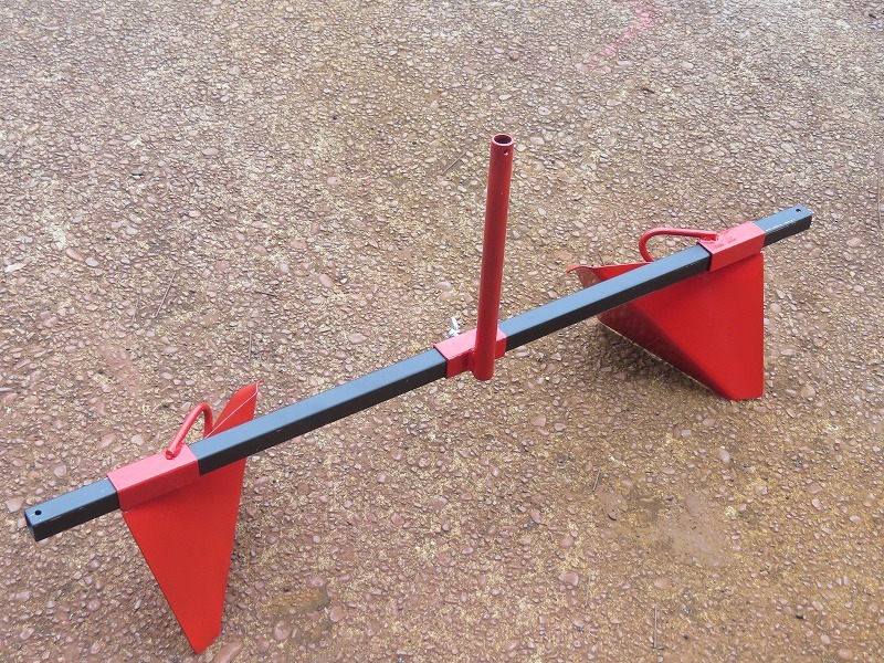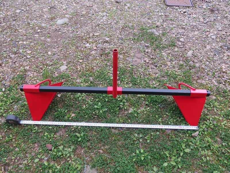 車軸ロータリー用 幅-----100cm(横支柱) 高さ 支柱全高---40cm 畝最高高さ---17cm位 畝幅----30~70cm 取り付け部 丸--21,7mm (丸鋼--16mm・・・角鋼12×32mmも製作可能) 鉄板厚み-------- 2.3t |