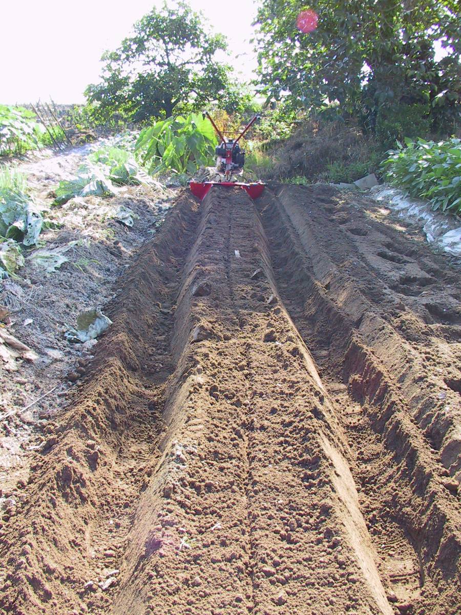 | 説明 | よく耕したところに、最高高さ17cmの 畝を成型します。 せめて耕運だけでもと、 買った耕運機 畝つくりがこんなにも大変とは 思わなかった、、。 という方に 耕運機をフル活用することでの 省力化、もう鍬は要りません 小型耕運機・ミニ耕運機専用に、 機能を落とさず シンプルに 超軽量コンパクトに 設計・製作 してあります。 (必ず前方向より、釣りを取って使用してください。) |