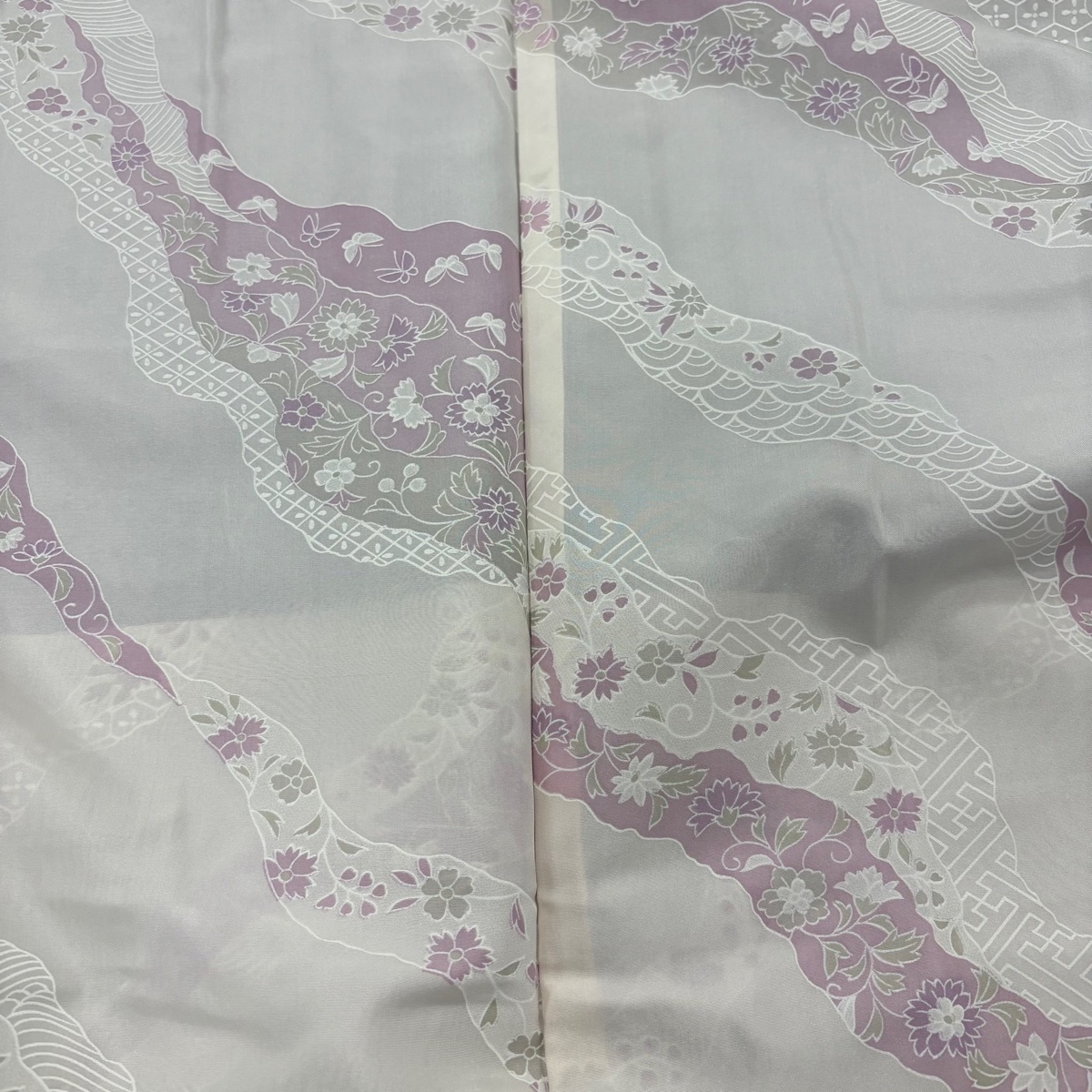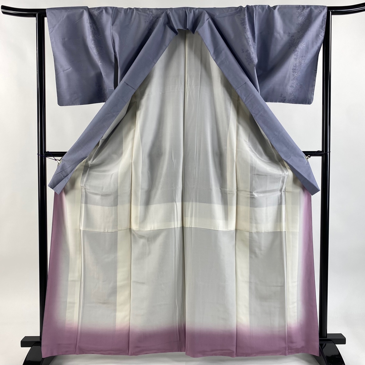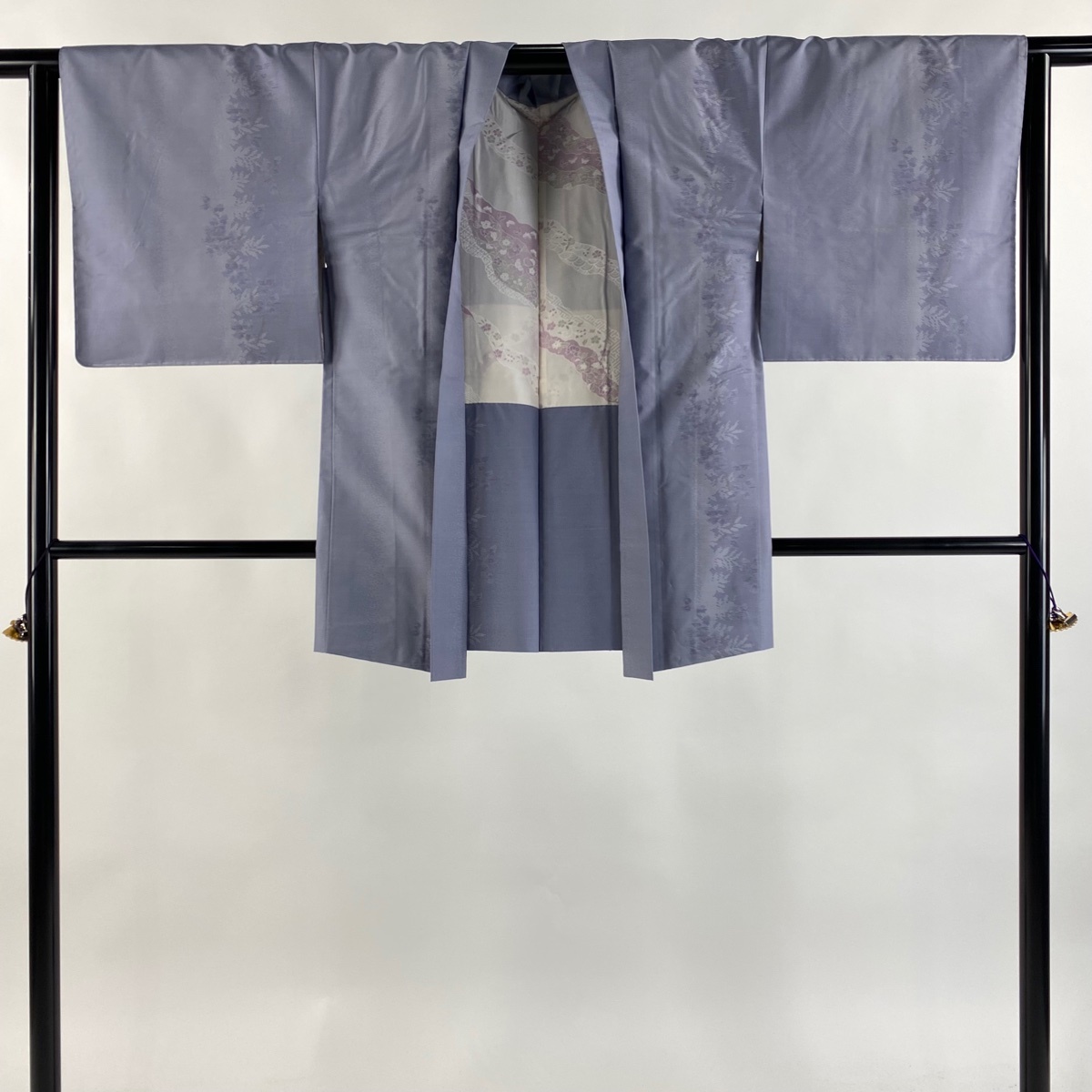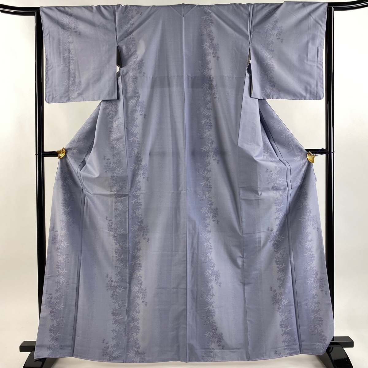 | 紬 美品 秀品 アンサンブル 草花 シルエット 薄紫 袷 身丈166 裄丈64.5 M 正絹 【中古】 |