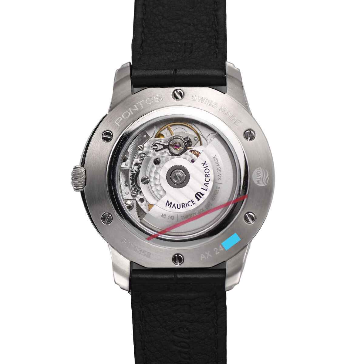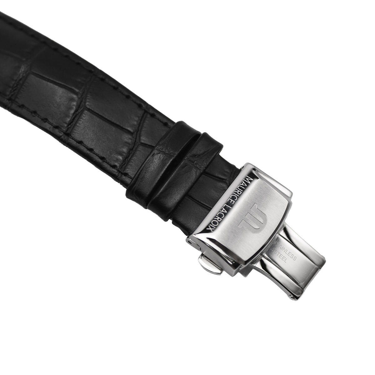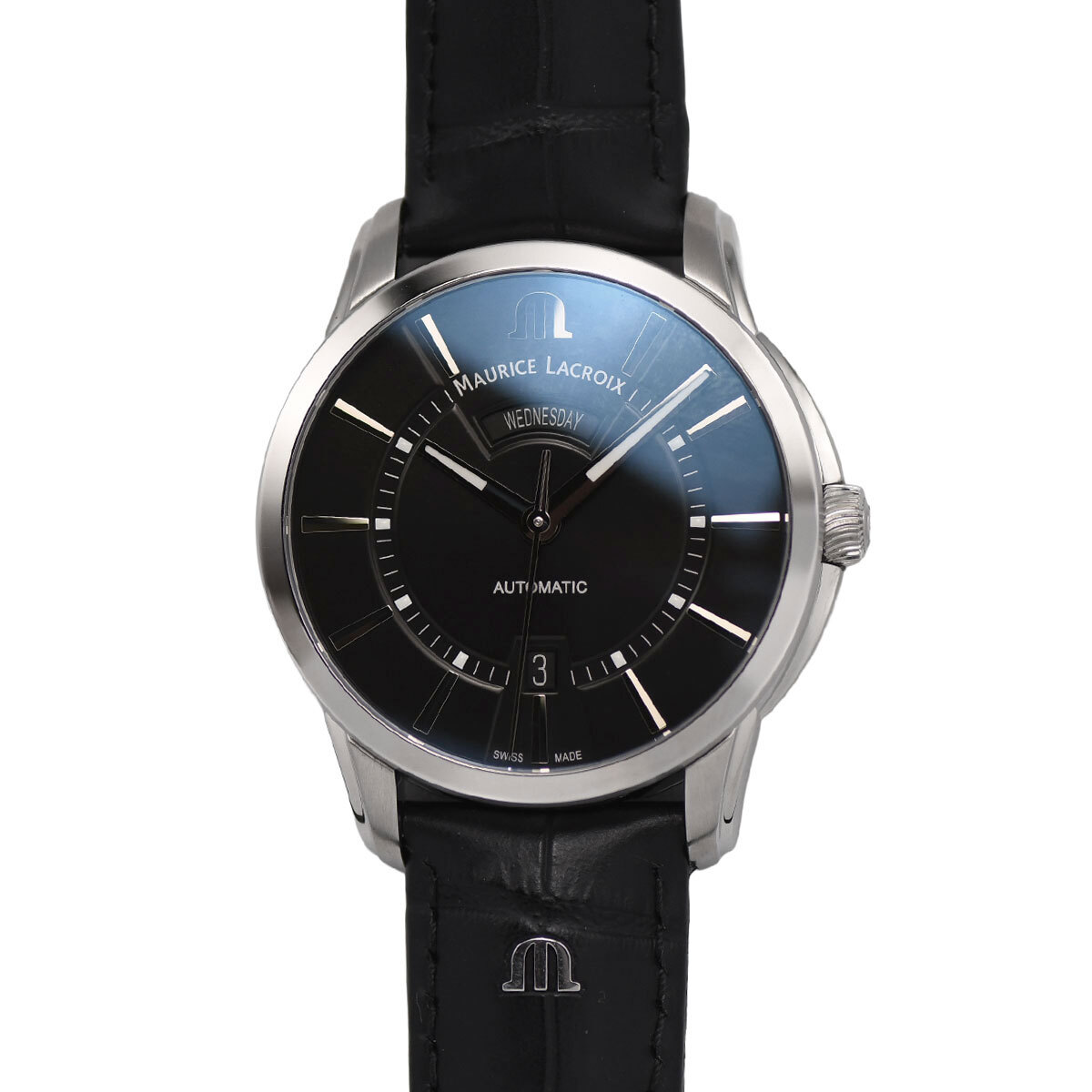 ブラックダイヤルとレザーストラップを組み合わせたスタイリッシュなモーリスラクロアのポントス デイデイトです。 デイデイト表示を備えた3針仕様でビジネスからカジュアルまで幅広いシーンで活躍する一本です。 |