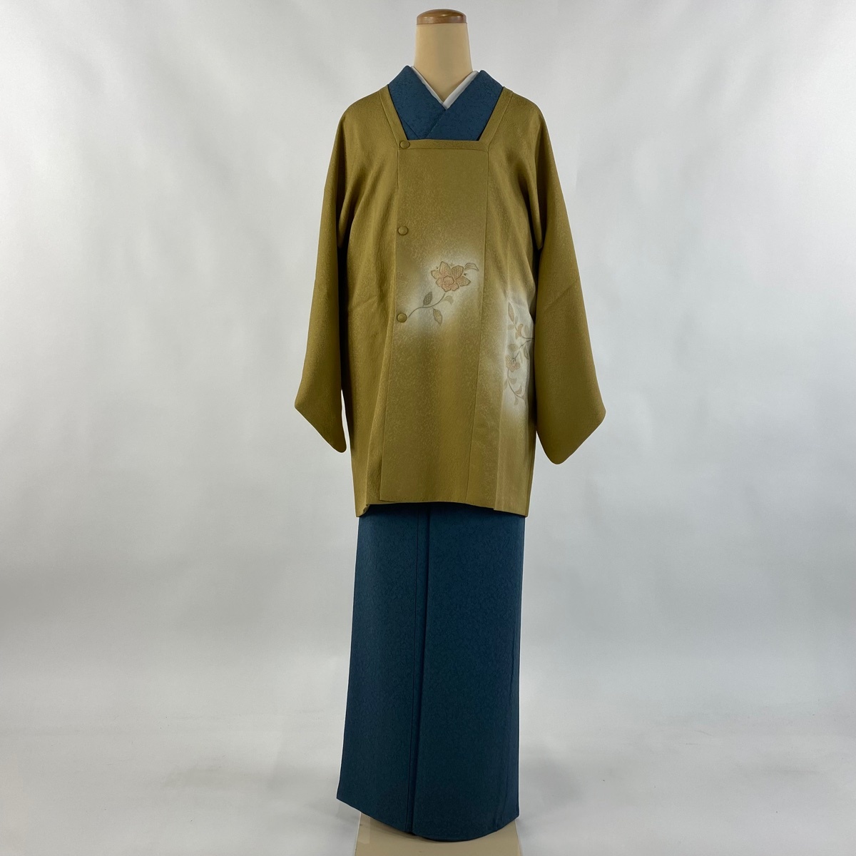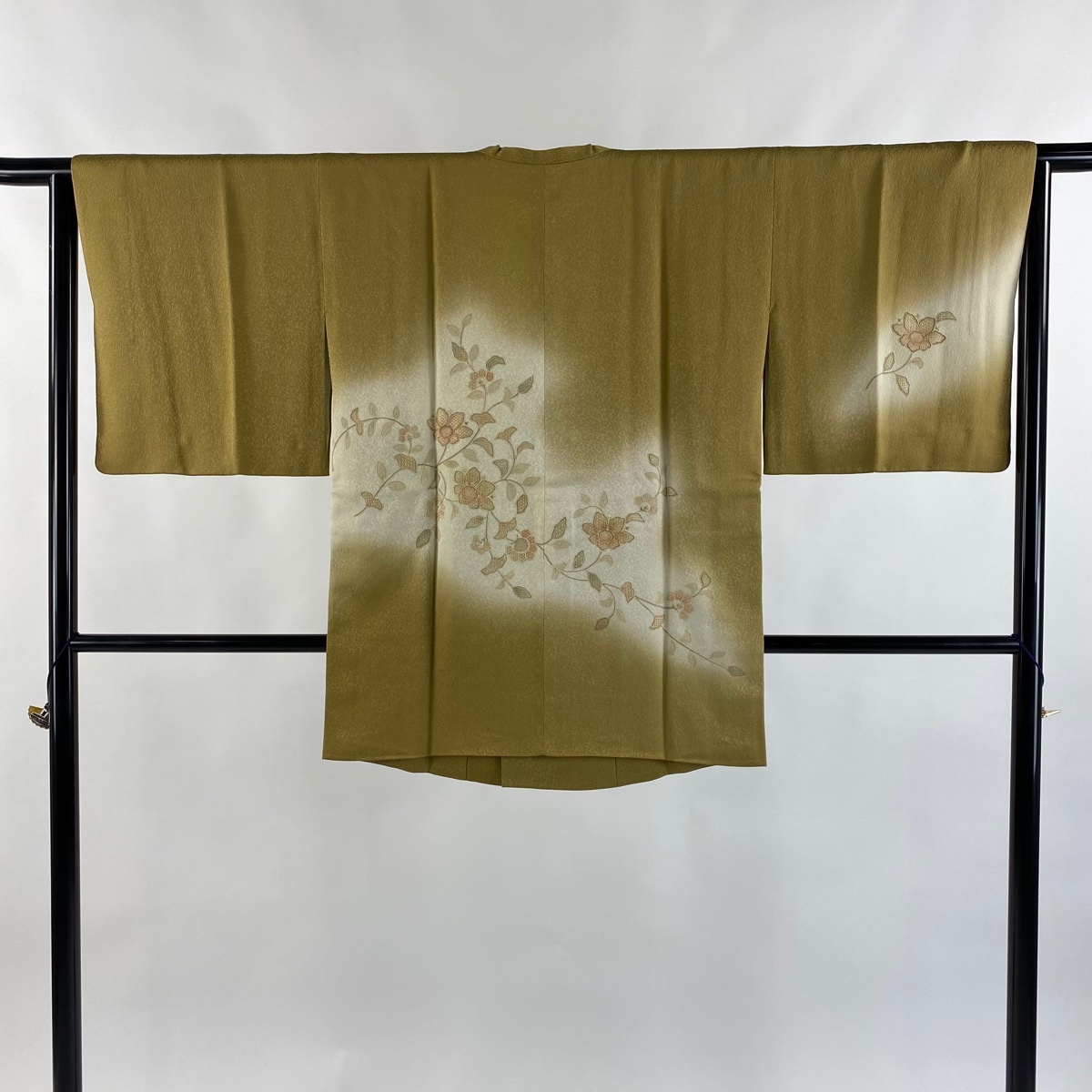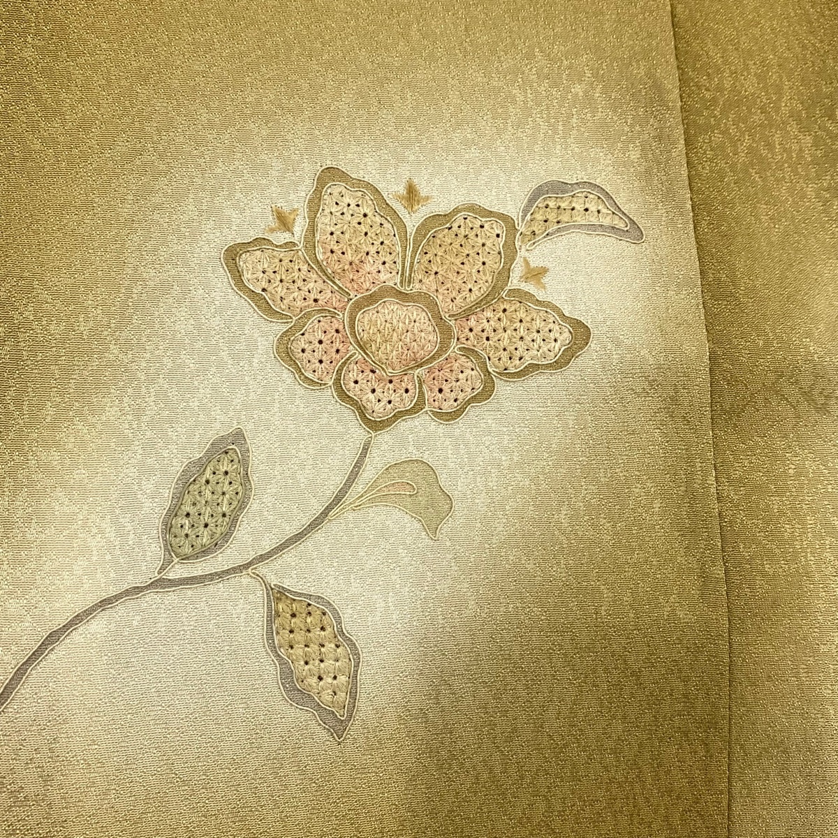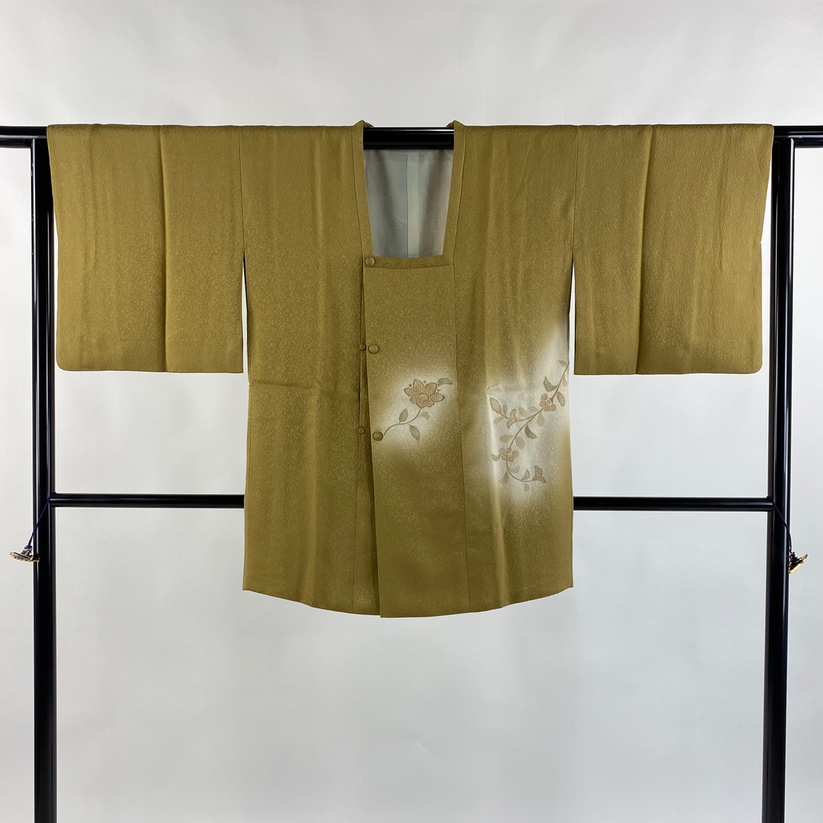 | 道行 美品 秀品 和装コート 角衿 草花 刺繍 ぼかし 黄土色 身丈82.5 裄丈65 M 正絹 【中古】 |
