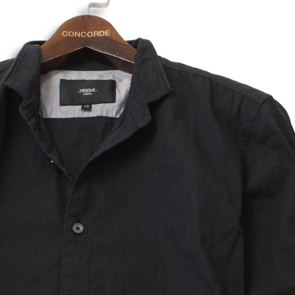 NICOLE Selection ニコル セレクション 通年 襟ワイヤー★ 長袖 スリム ストライプ シャツ Sz.46 メンズ 黒