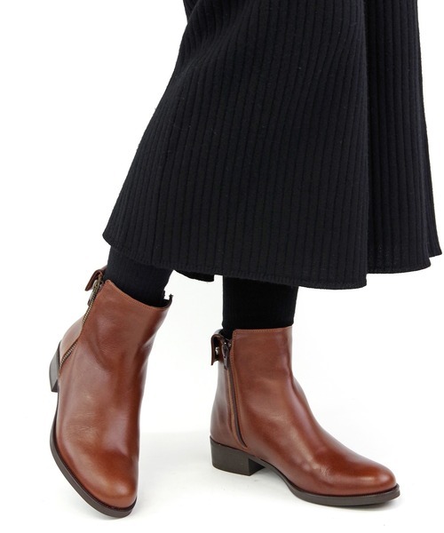 キーワード:ブーツ レディース ショート プレーントゥ ローヒール 紐なし 秋 冬