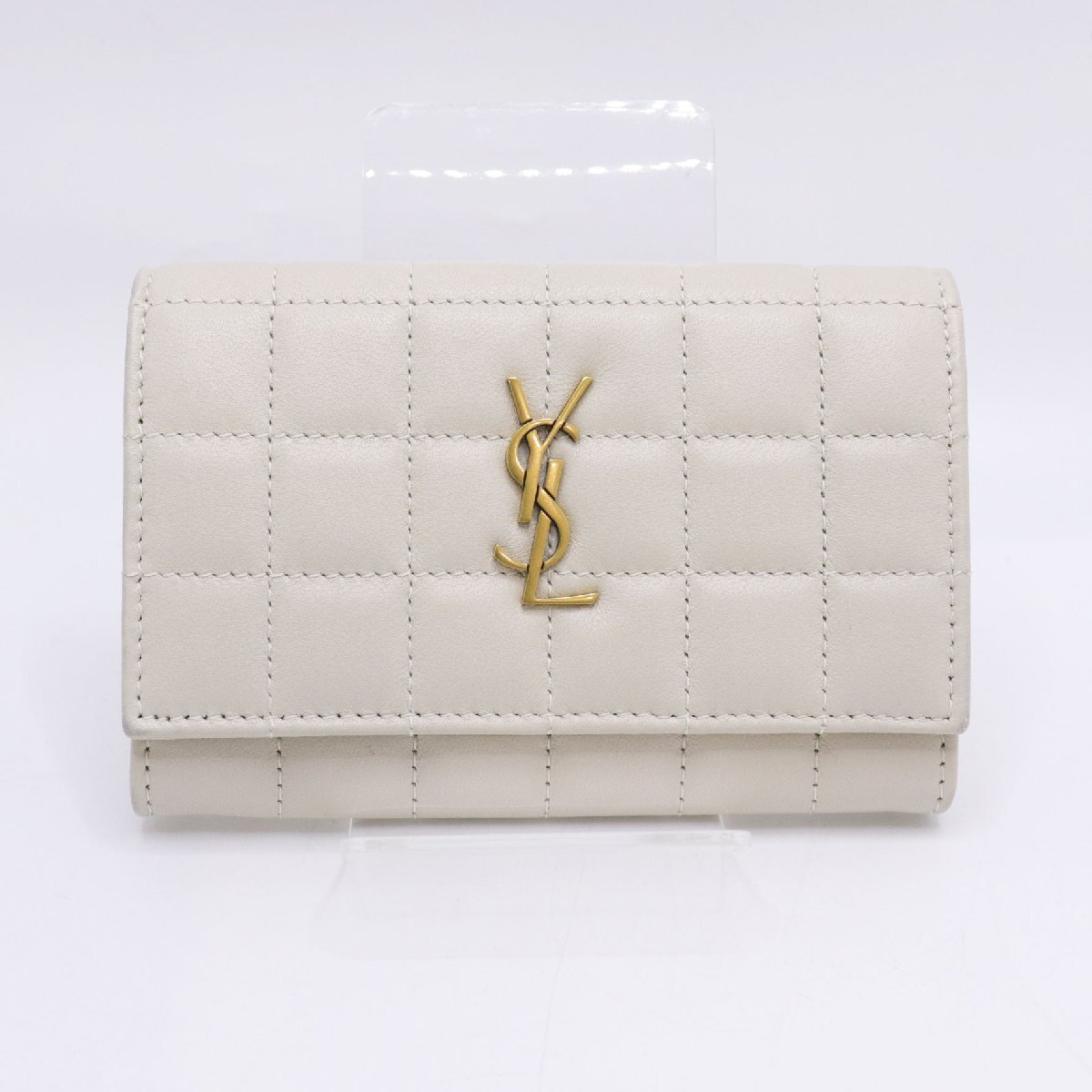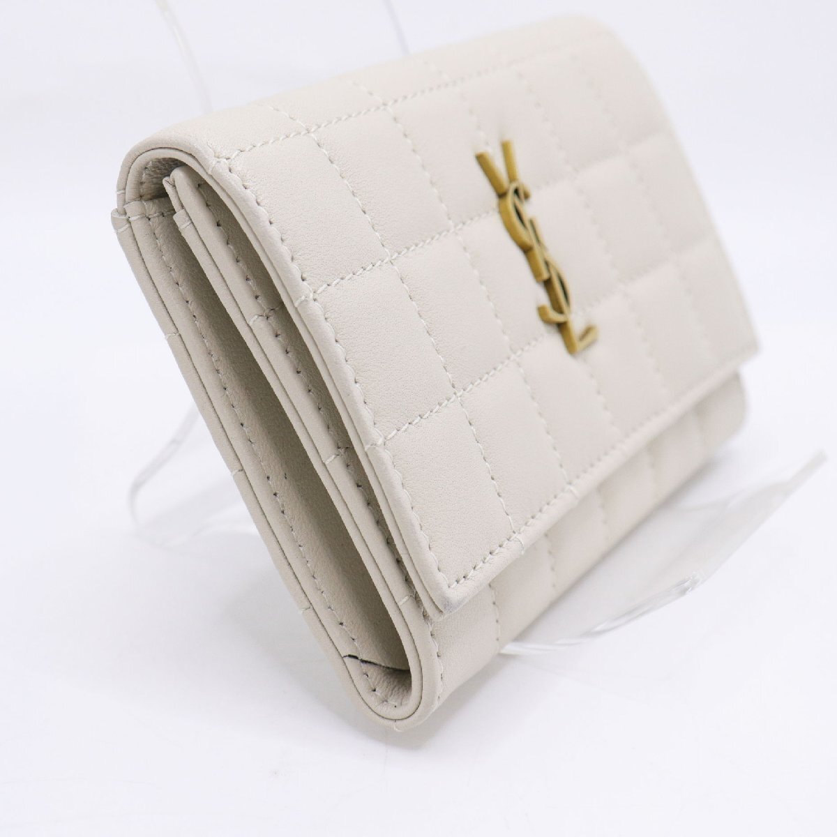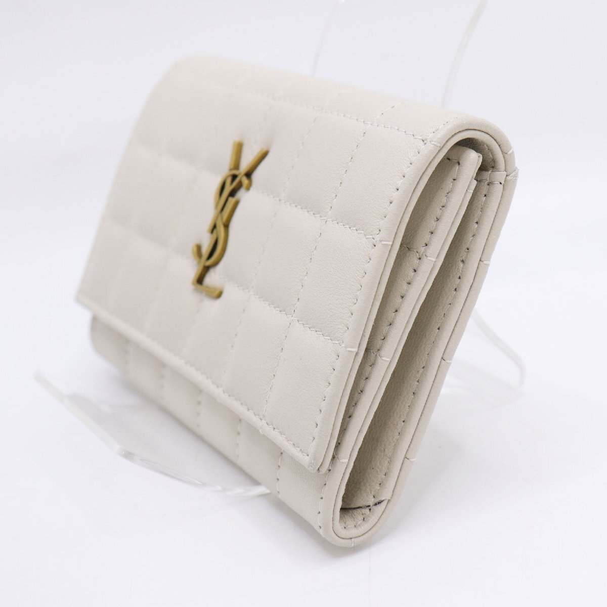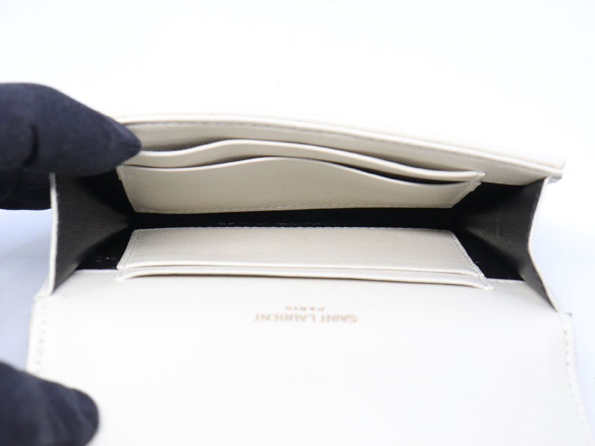YSL サンローラン カサンドラ マトラッセ カレ スモールエンベロープウォレット ブランヴィンテージ 財布 カードケース 白系 中古 美品!!