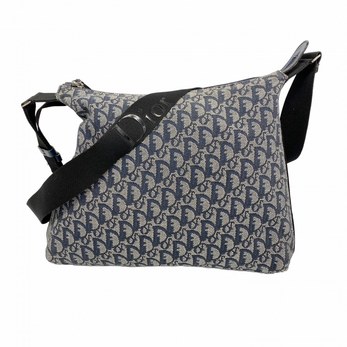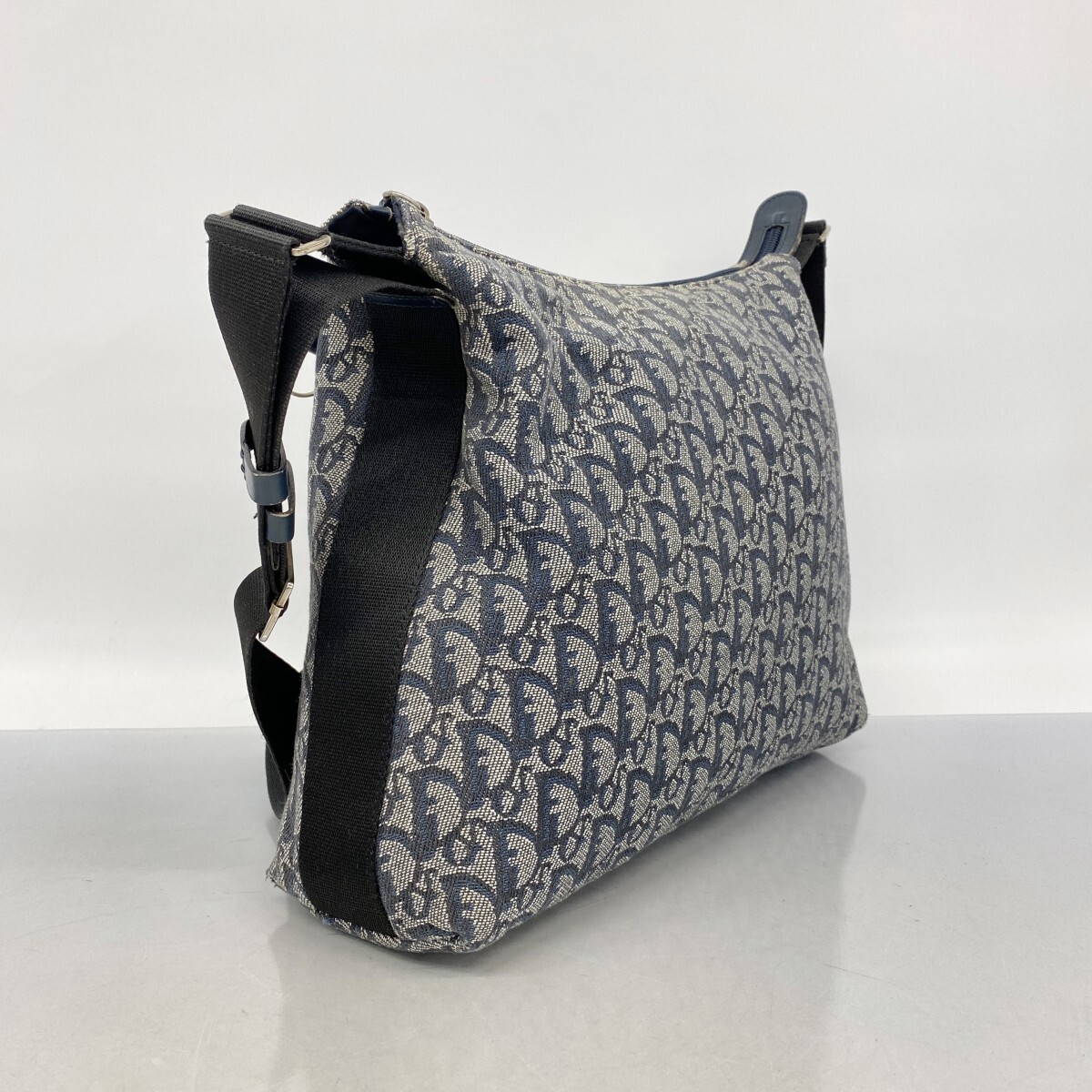 ★SALE【5mb1247-h】クリスチャンディオール ショルダーバッグ トロッター キャンバス ネイビー シルバー金具【中古】レディース