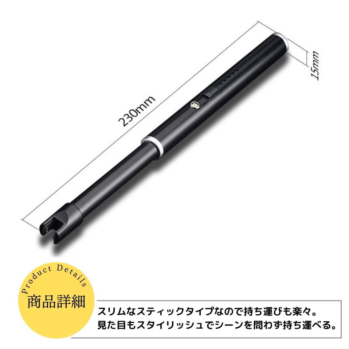 スティックライター ブラック 便利 軽量 点火用 電子 ろうそく アウトドア