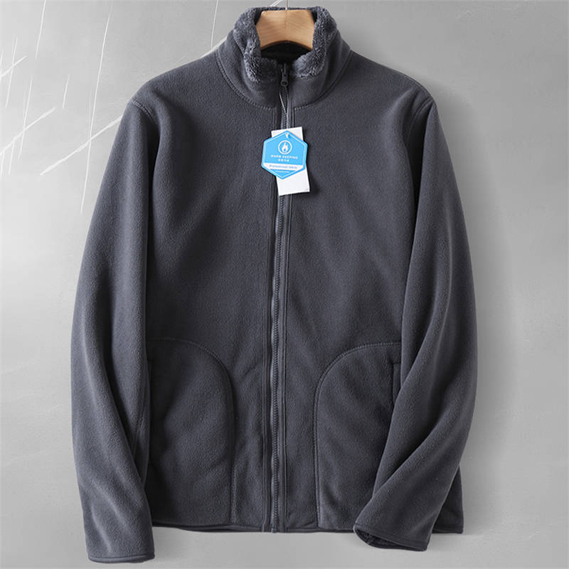 1449-Lグレー フリースジャケット メンズ 裏起毛 立ち襟 ボア ジャケット 新品 防寒 暖かい リバーシブル ビジネス カジュアル ブルゾン