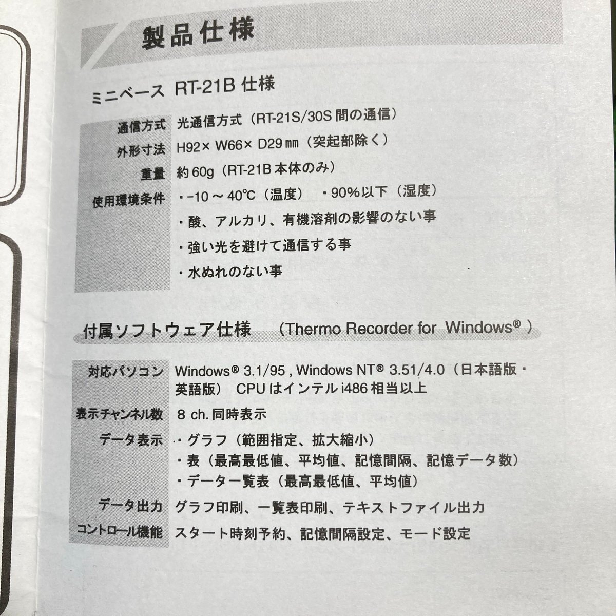 | 商品 | 洋清i358 エスペック/ESPEC サーモレコーダー用ミニベース RT-21B ■ 取説 接続コード ソフトウェア (8ch同時表示 温-10~40℃/湿90%) 付 |