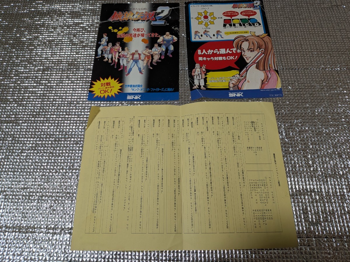 SNK ネオジオ 餓狼伝説2 純正インスト2枚とディップスイッチ用説明書