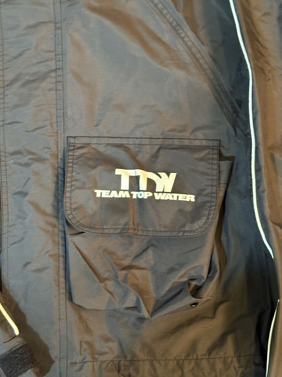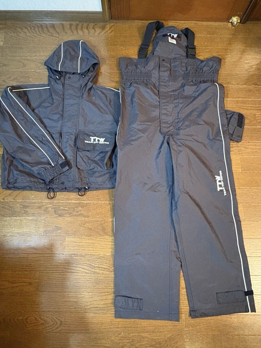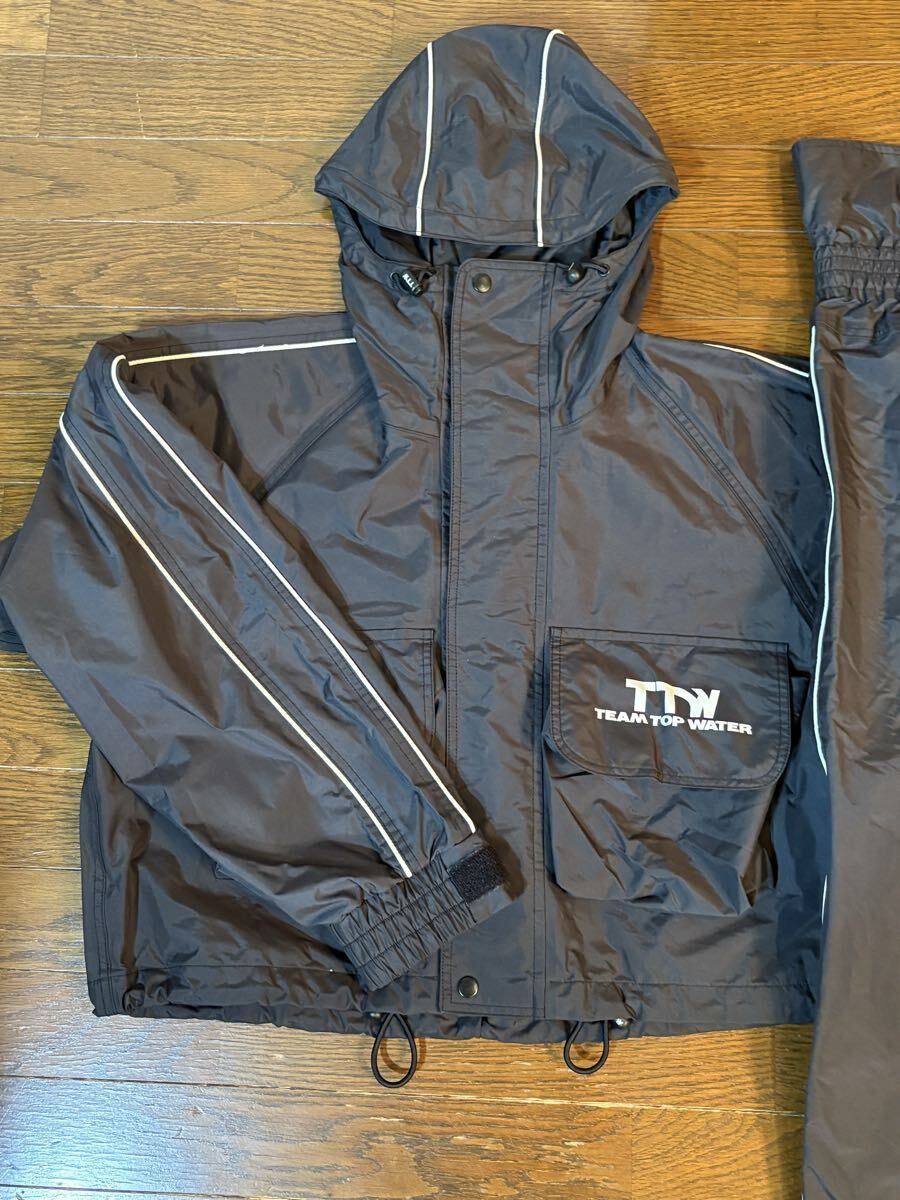 レインスーツのようですが、防水、防寒に優れていて釣りだけでなくアウトドアスポーツにお洒落に着ることができます。