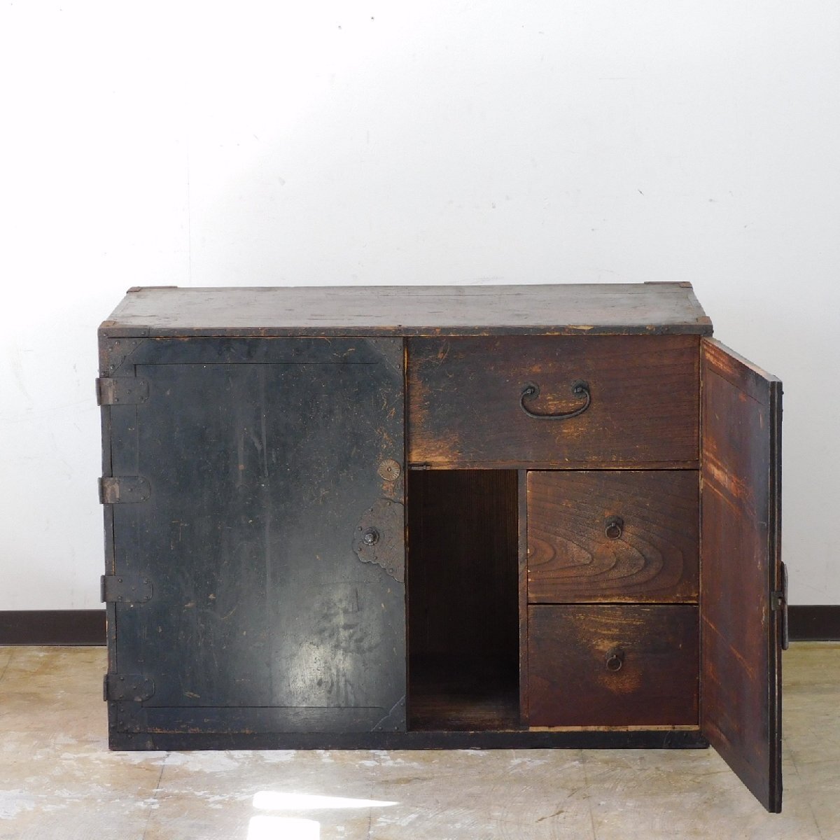 江戸期。黒々としたふるい箪笥。