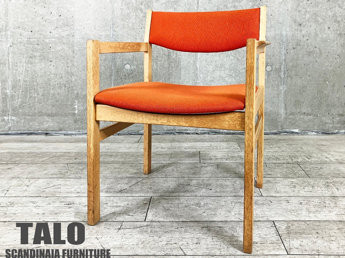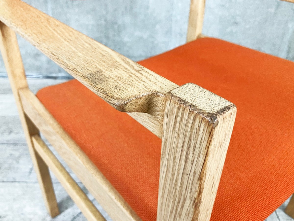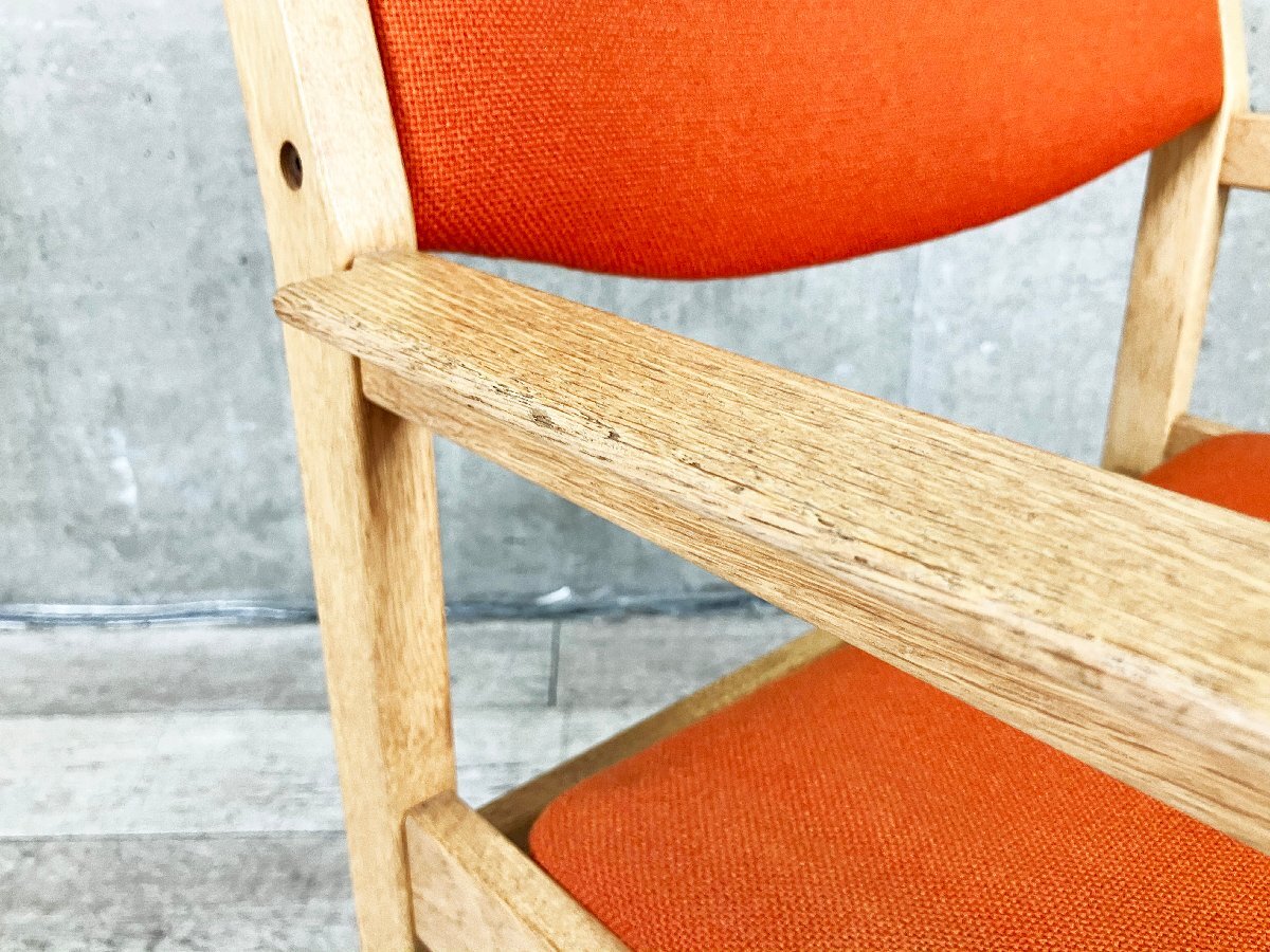 | ■北欧家具専門店『TALO』にて購入された、上質な北欧ヴィンテージのアームチェアです。 オーク材のフレームに、温かみのあるオレンジファブリックを組み合わせた一脚。直線的な構造美と柔らかな張地のコントラストが魅力で、北欧らしい洗練されたデザインセンスを感じさせます。 ややワイドな座面と低めのアームが心地よく、ダイニングチェアとしてはもちろん、デスクチェアやサイドチェアとしても活躍。木部には経年による優しい風合いが宿り、ヴィンテージ家具特有の深みを楽しめます。 ■サイズ/W630 x D530 x H765 SH410 ■色/オレンジ ■状態/全体的に使用に伴う細かいスレ傷がございます。 雰囲気を損ねるようなダメージはなく、まだまだ気持ちよくお使い頂けます。 |