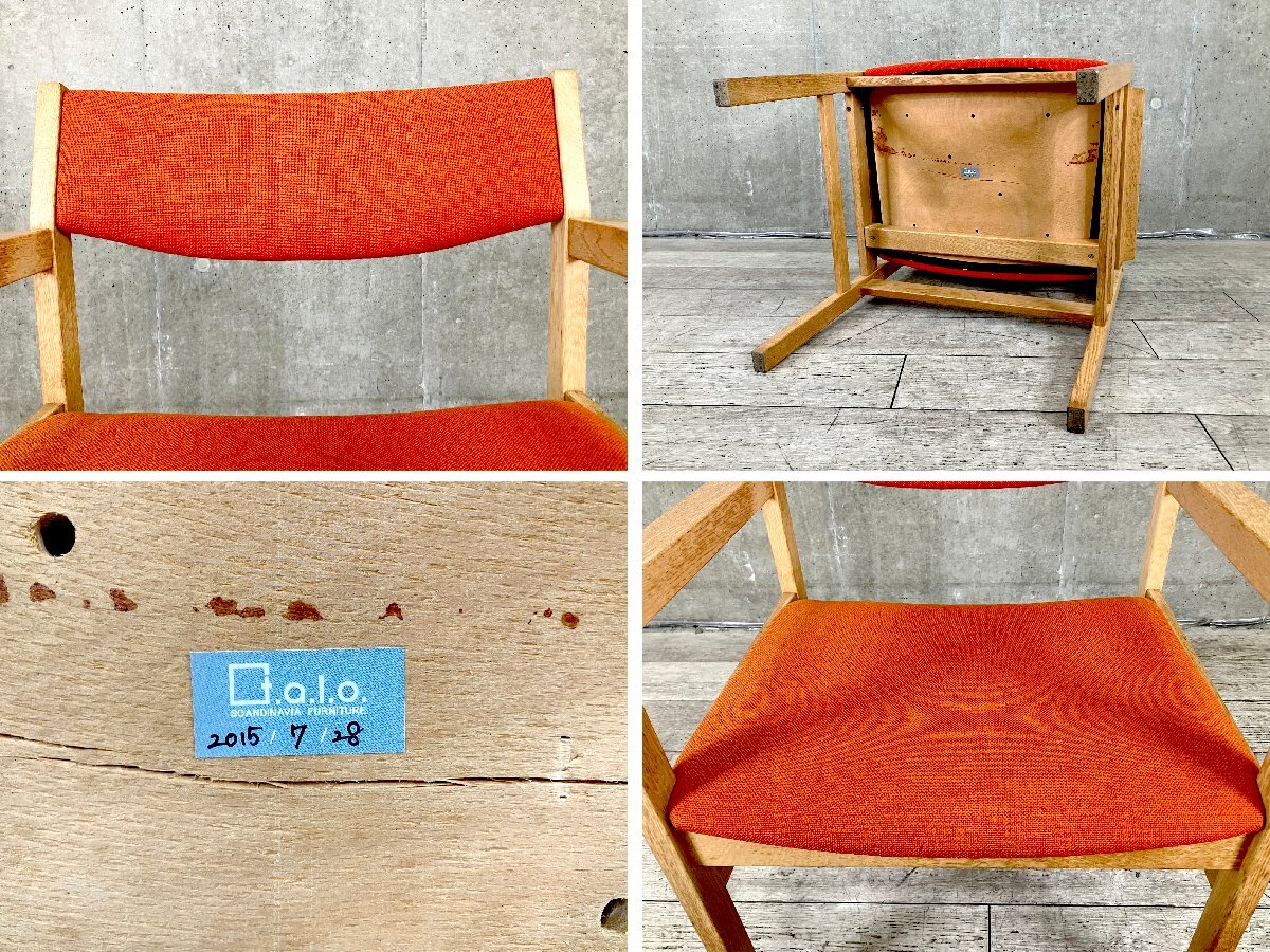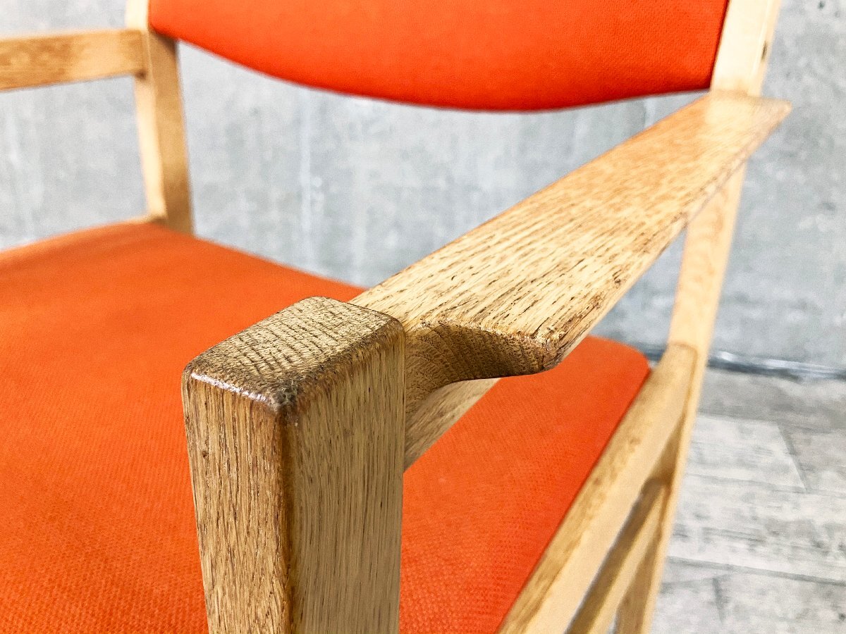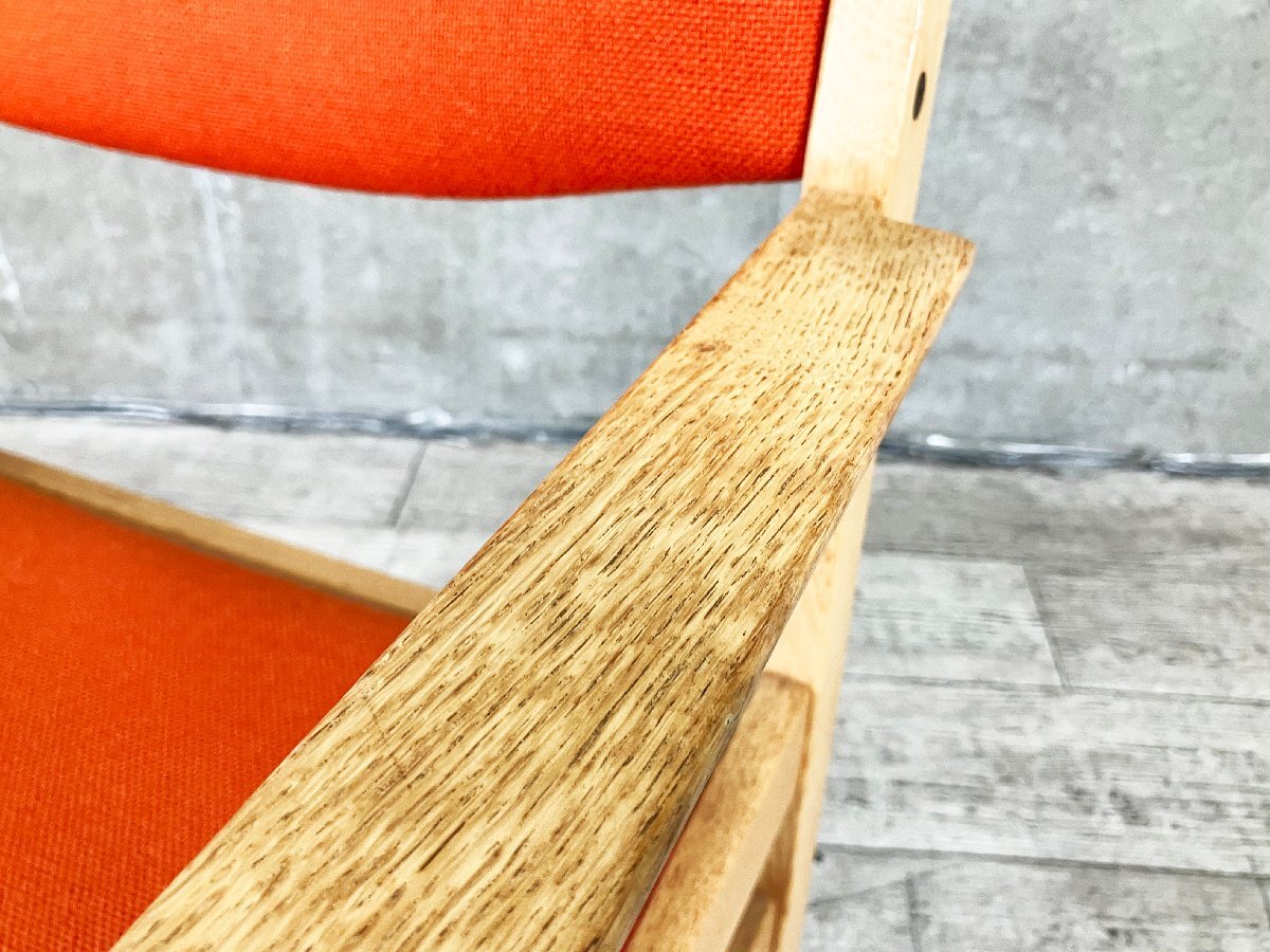 | ■北欧家具専門店『TALO』にて購入された、上質な北欧ヴィンテージのアームチェアです。 オーク材のフレームに、温かみのあるオレンジファブリックを組み合わせた一脚。直線的な構造美と柔らかな張地のコントラストが魅力で、北欧らしい洗練されたデザインセンスを感じさせます。 ややワイドな座面と低めのアームが心地よく、ダイニングチェアとしてはもちろん、デスクチェアやサイドチェアとしても活躍。木部には経年による優しい風合いが宿り、ヴィンテージ家具特有の深みを楽しめます。 ■サイズ/W630 x D530 x H765 SH410 ■色/オレンジ ■状態/全体的に使用に伴う細かいスレ傷がございます。 雰囲気を損ねるようなダメージはなく、まだまだ気持ちよくお使い頂けます。 |