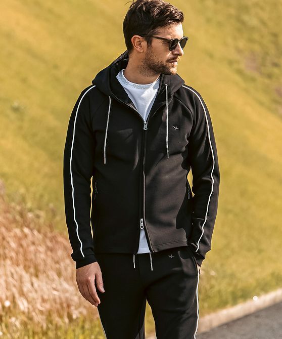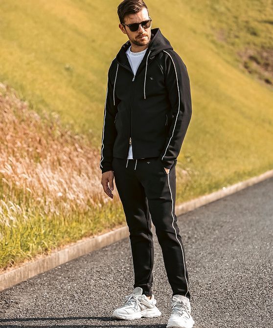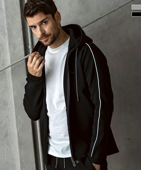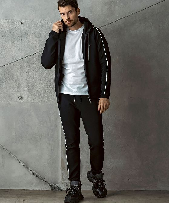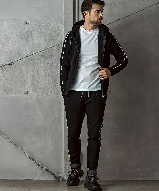 柔らかくハリのある厚手のポンチ生地を採用したセットアップ。