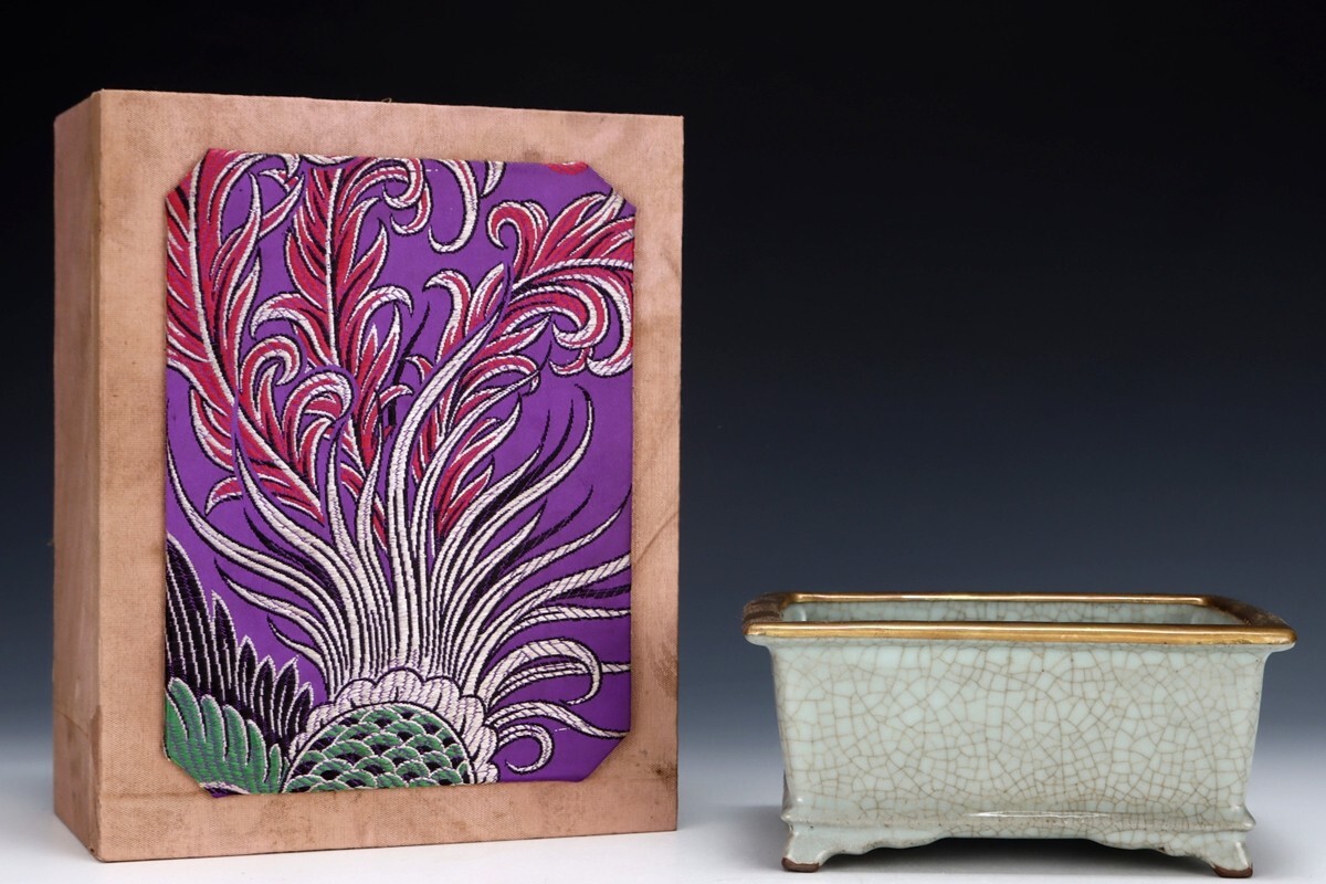 「宋 官窯 陶磁器 灰青釉 四方洗」染付 置物 擺件 古賞物 中国古美術 旧蔵出