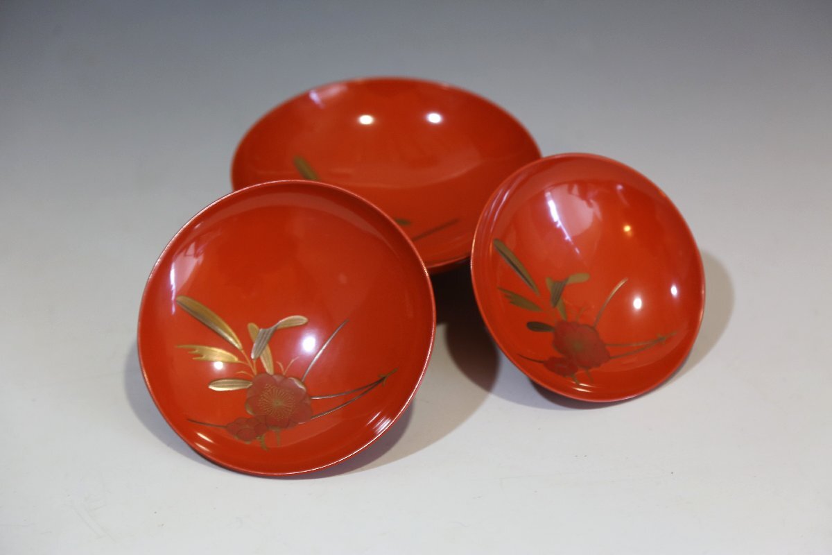 ★★★ 江戸後期 朱塗 松竹梅蒔絵 三ツ盃 ★★★