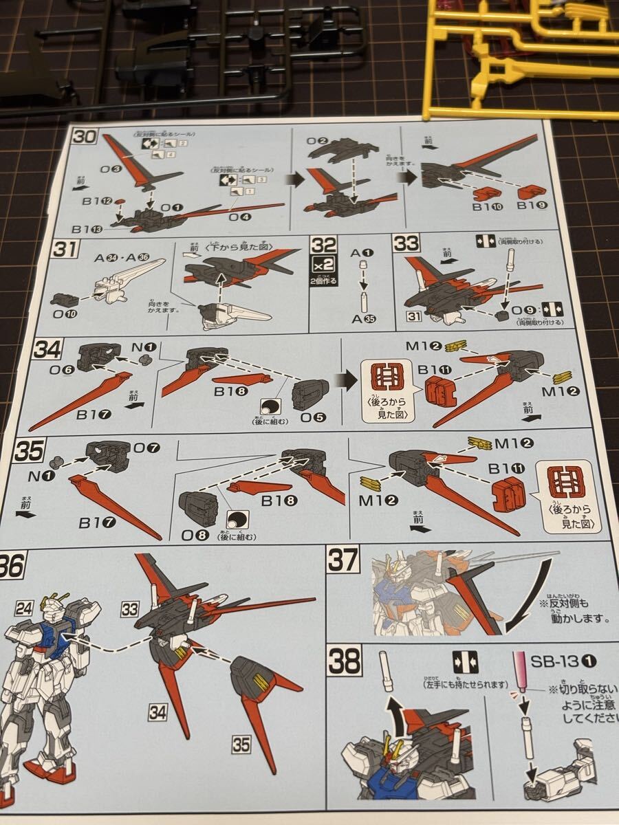エールストライカーパック、アーマーシュナイダー、ビームライフル、シールド、ビームサーベル、のセットです。ストライカーパックの説明書もお付けします。