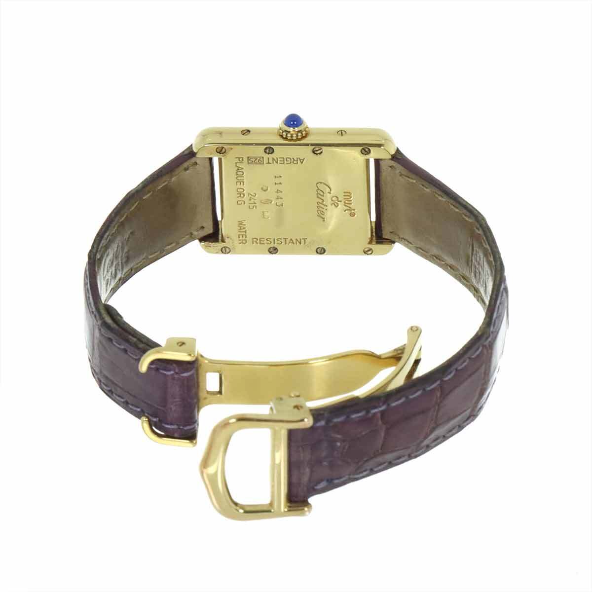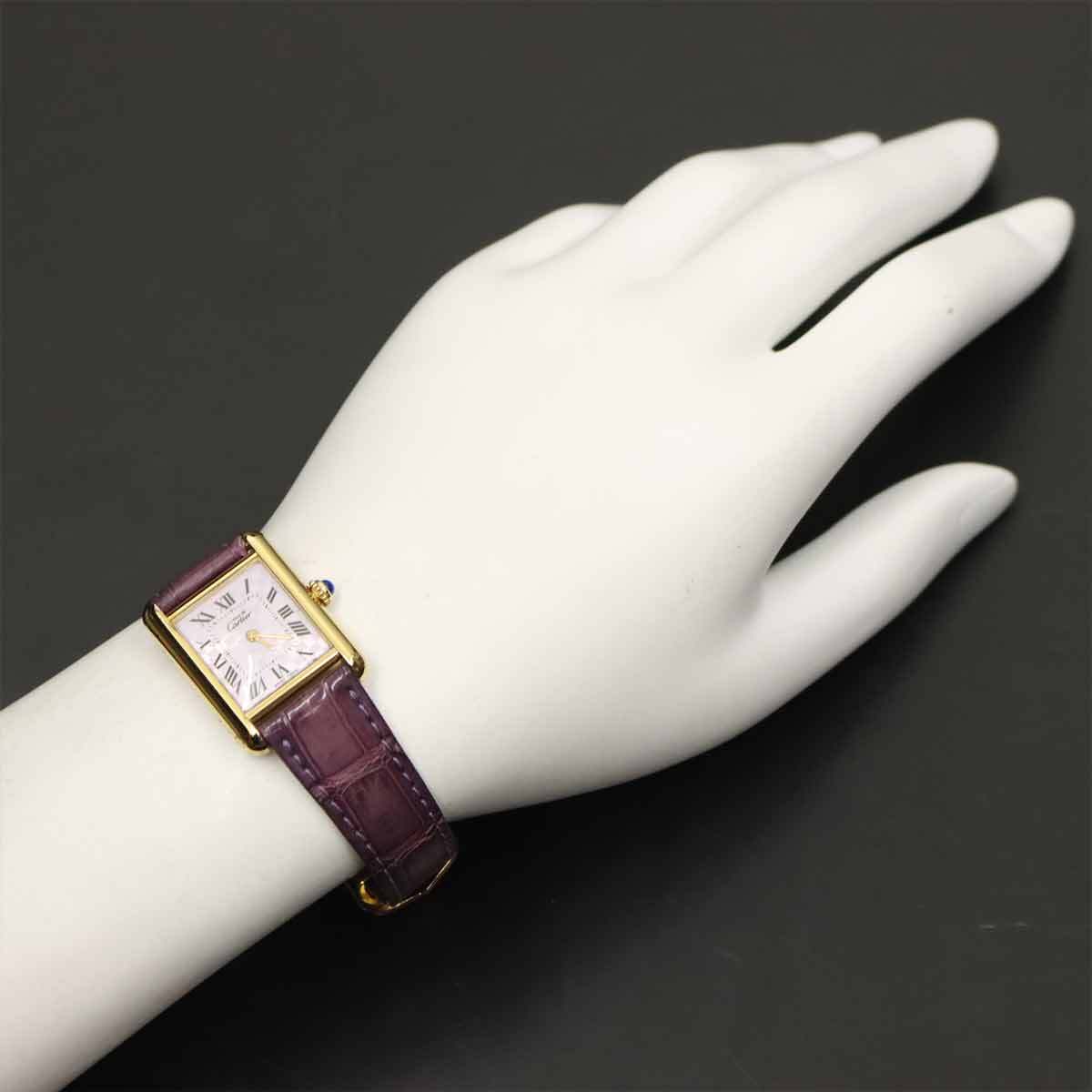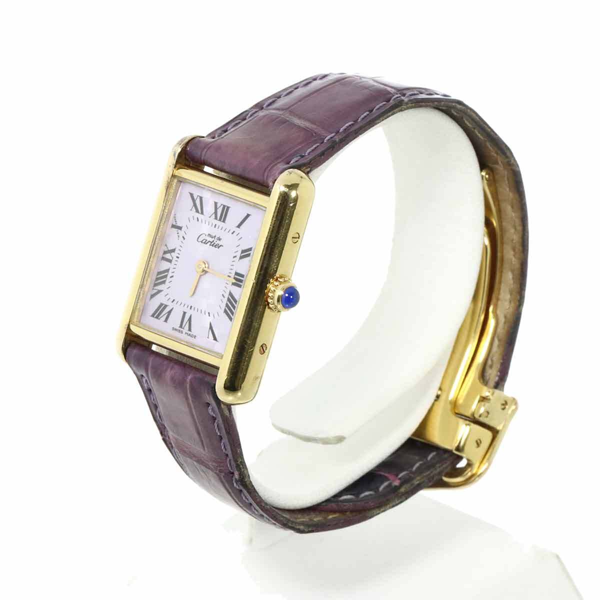 | 商品概要 | カルティエから「マストタンク」レディース腕時計です。文字盤はパープルカラーに、ローマンインデックスが並んだカルティエらしいデザイン。ケースはシルバー925に金メッキが施されたYGP素材です。 |