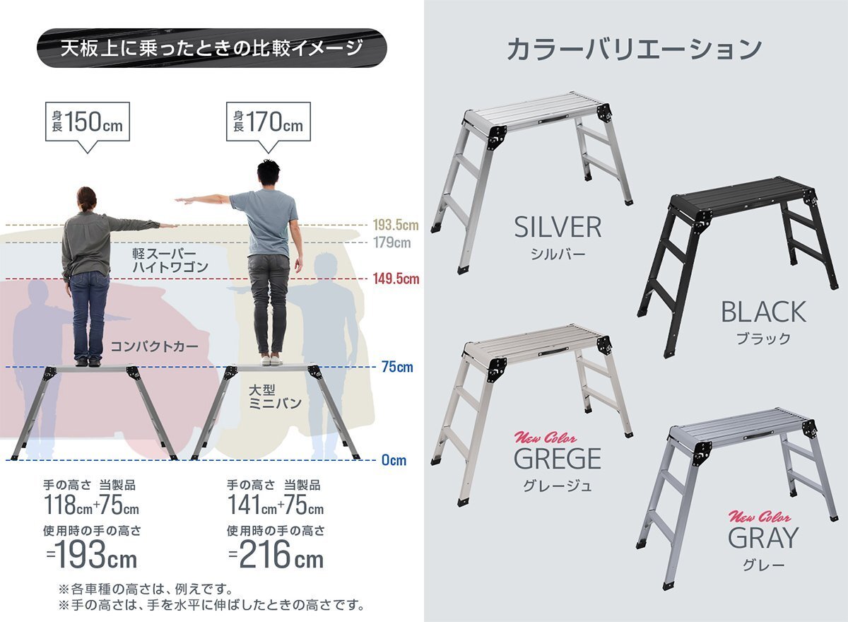 軽量のアルミ製! 洗車や壁面のペンキ塗りなどに最適な足場台です。