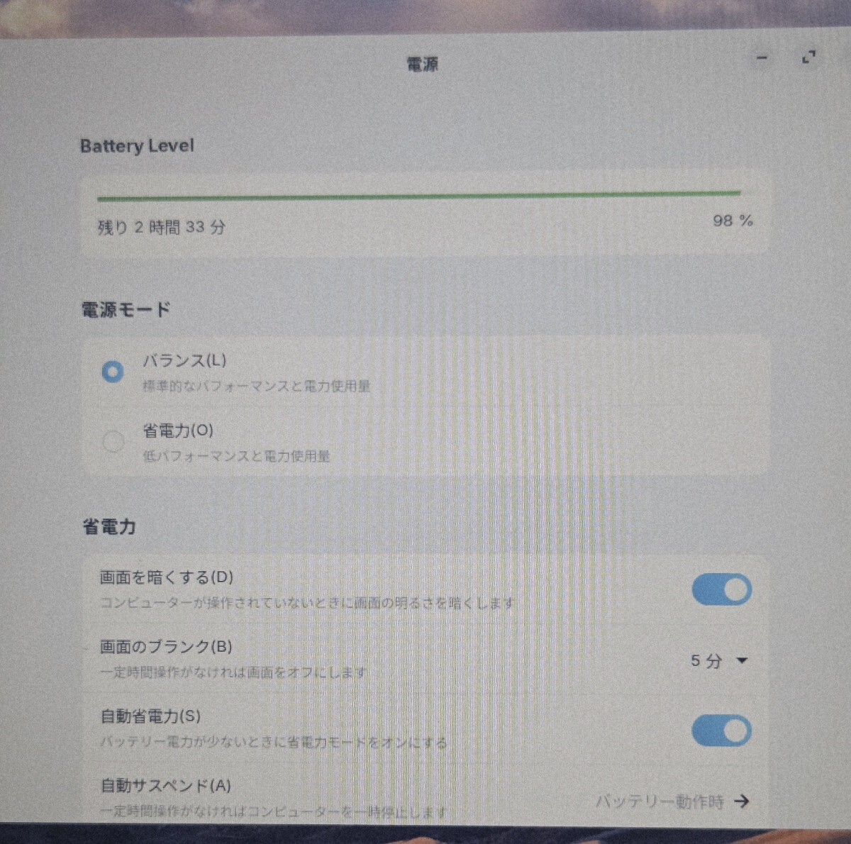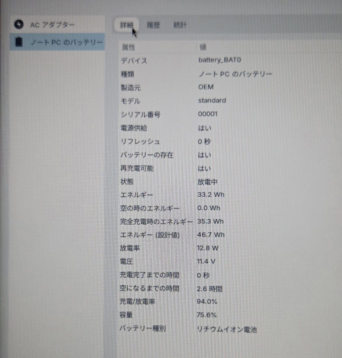バッテリーは満充電にしておきますが、保ちが悪いので早めにACアダプターの購入をお勧めします。