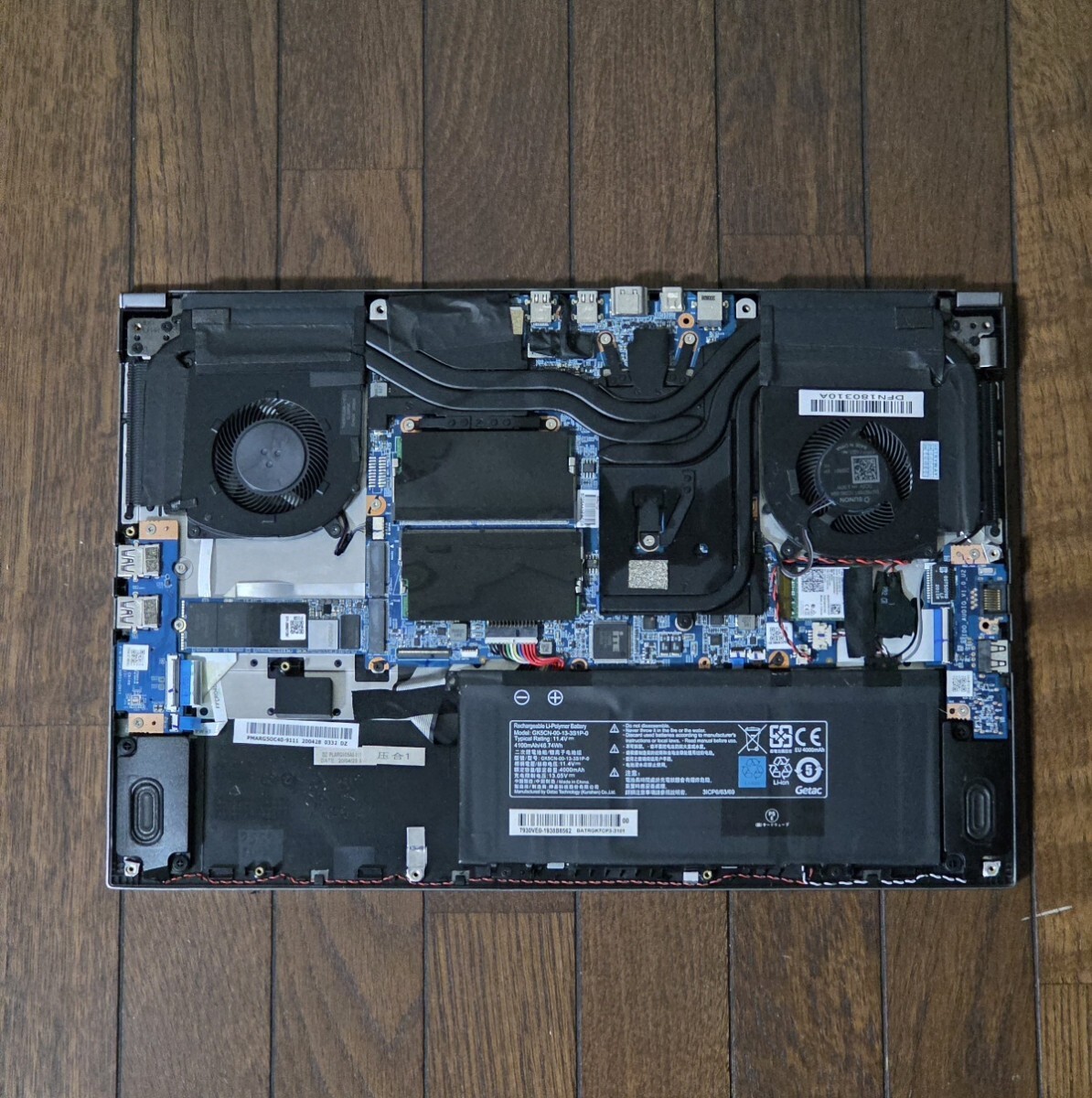 【その他】入手当初、ストレージが欠品していたので、手持ちの中古品を取り付けています。相性問題はないようです。メモリは付いていましたが、スペックを最大に生かせる構成ではありません。メーカーが間違えたのか、前所有者が交換したのか分かりませんが、互換品なので動作には問題ありません。SSDの要領が少ないですが、予備スロットがありますので、既存SSDを生かしたまま増設出来ます。