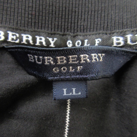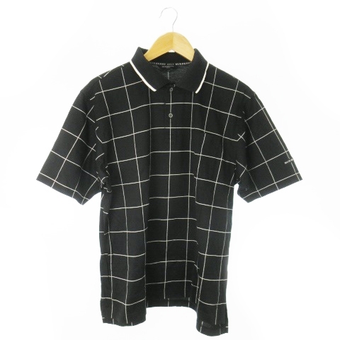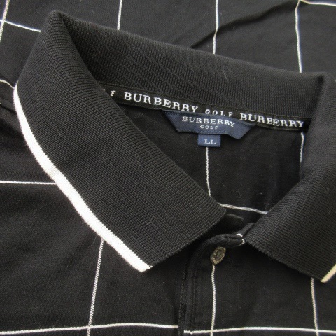バーバリーゴルフ BURBERRY GOLF ポロシャツ 半袖 コットン ストレッチ チェック 総柄 ワンポイント ロゴ ゴルフ LL 黒