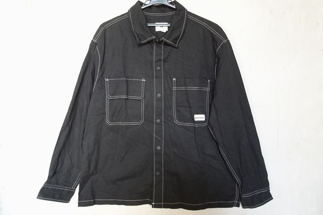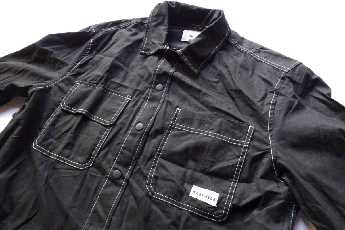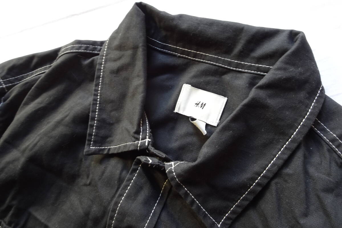 H&M/長袖シャツジャケット/WORKWEAR/前スナップボタン/両胸ポケット/白ステッチ糸/黒/ブラック/EURサイズL(10/24R7)
