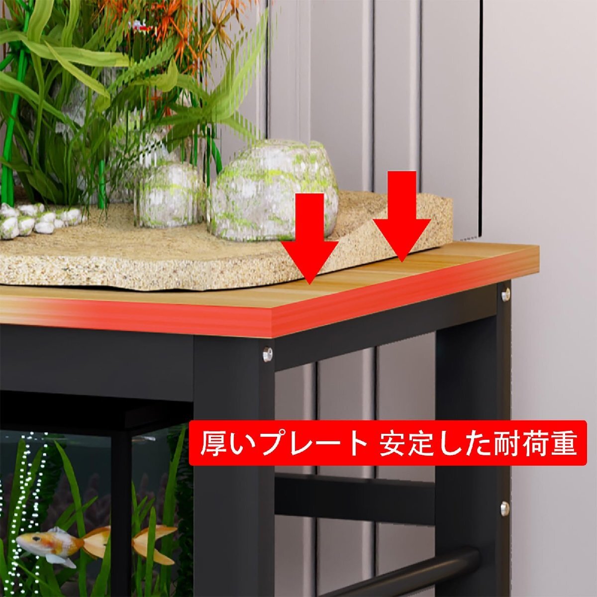 強力な機能を備えた3層立体収納:上部は大型水槽や魚飼育用の水槽の荷重に耐えることができ、下部の二重層スペースは小型水槽、本、装飾品などを収納するのに適しています。広々とした収納テーブルは、アイテムの滑りを防ぐためのスチールフレームエンクロージャーデザインと組み合わされており、多様な収納ニーズを満たします。