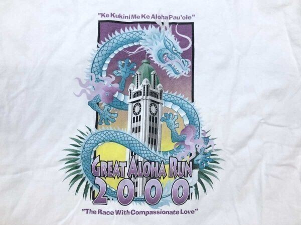 グレートアロハラン GREAT ALOHA RUN 2000 ハワイ ホノルル 完走 フィニッシャー 記念品 グッズ 半袖Tシャツ メンズ バックプリント有 白です。