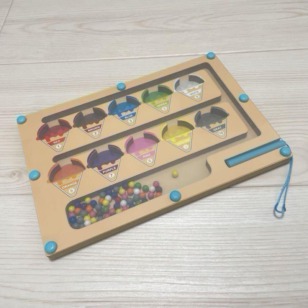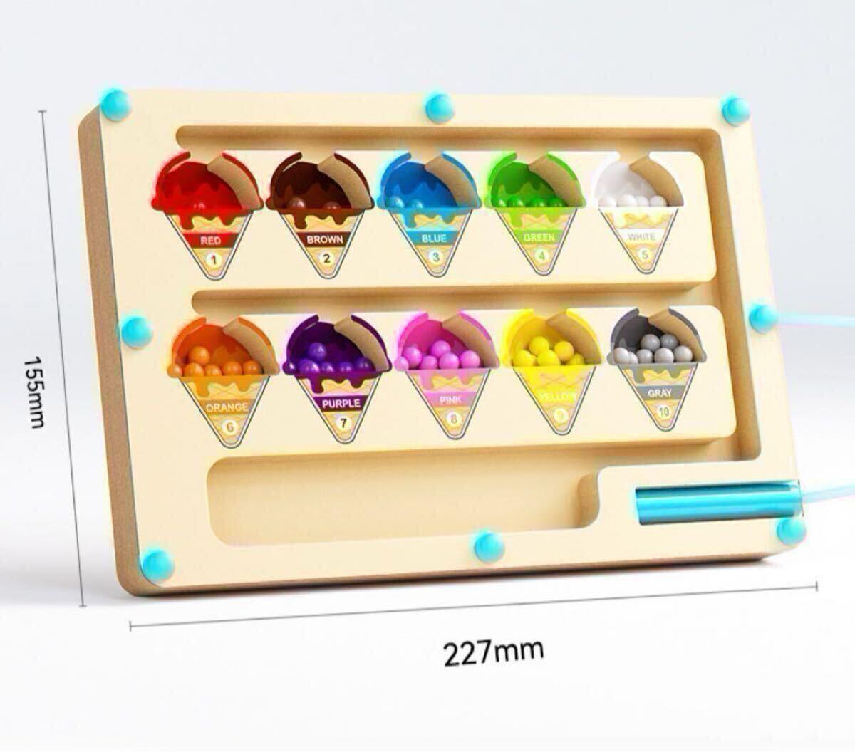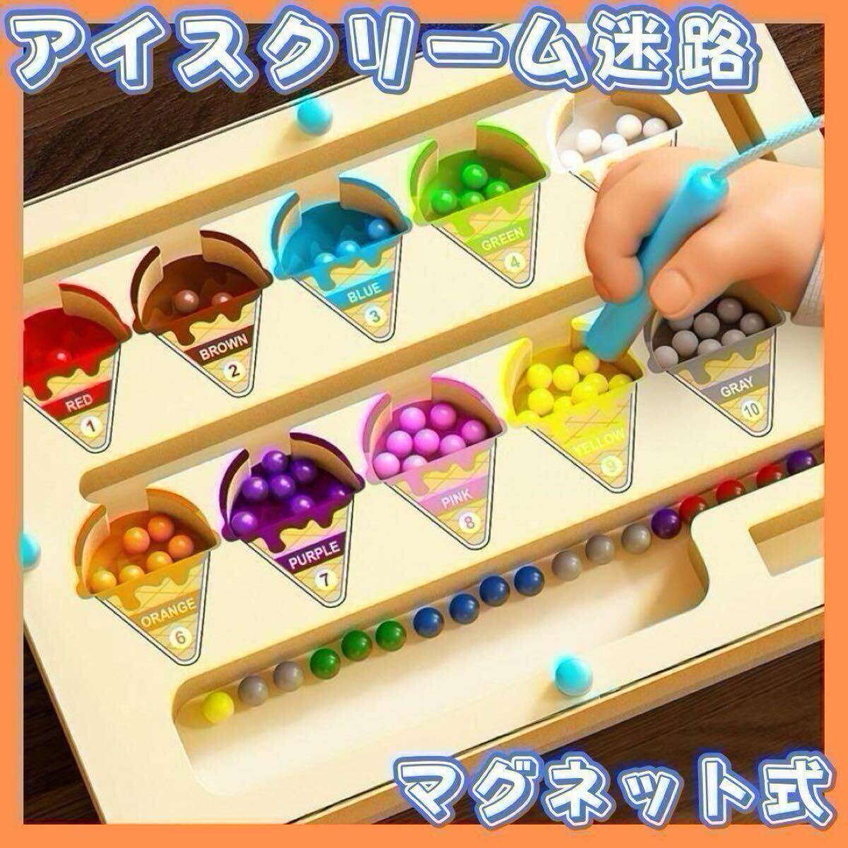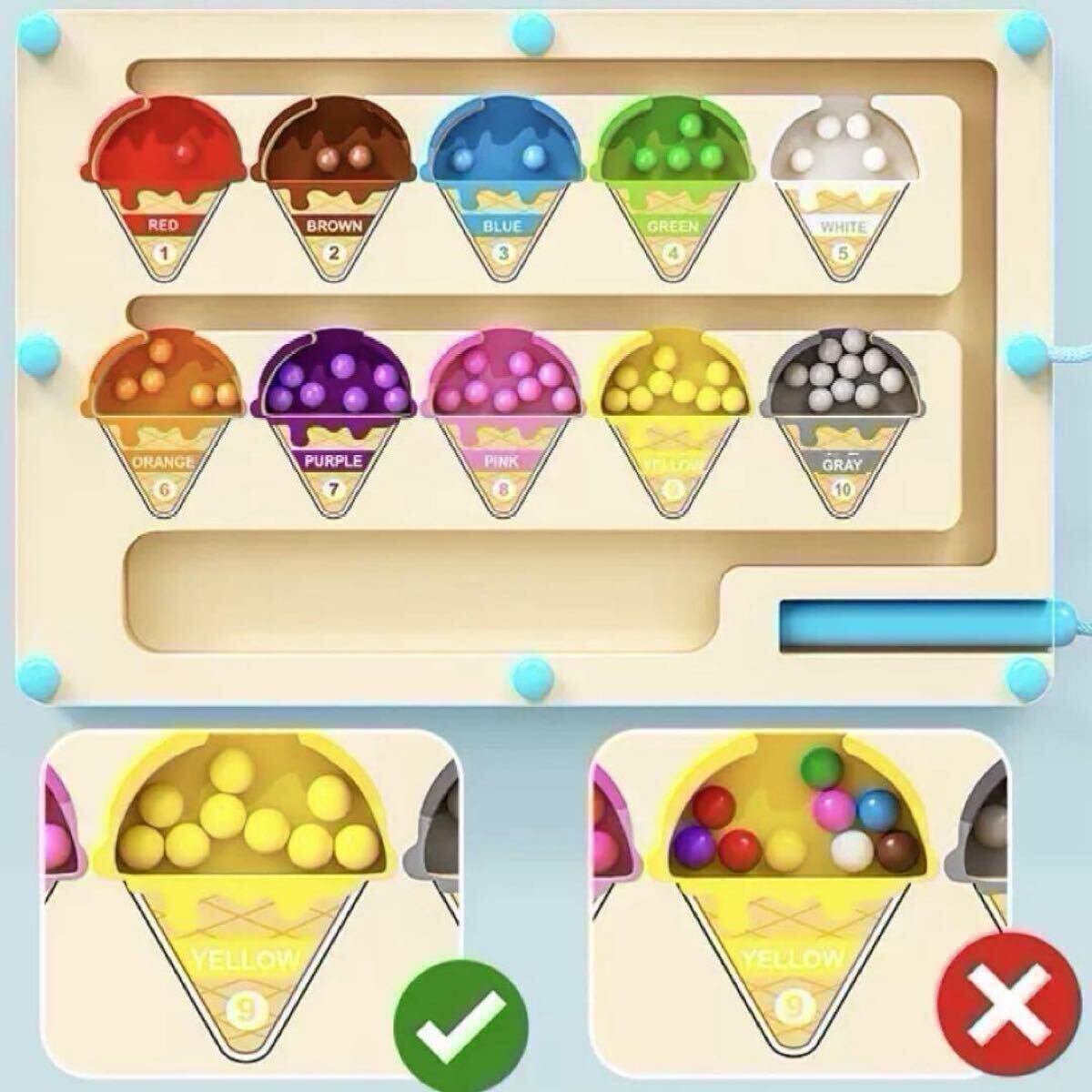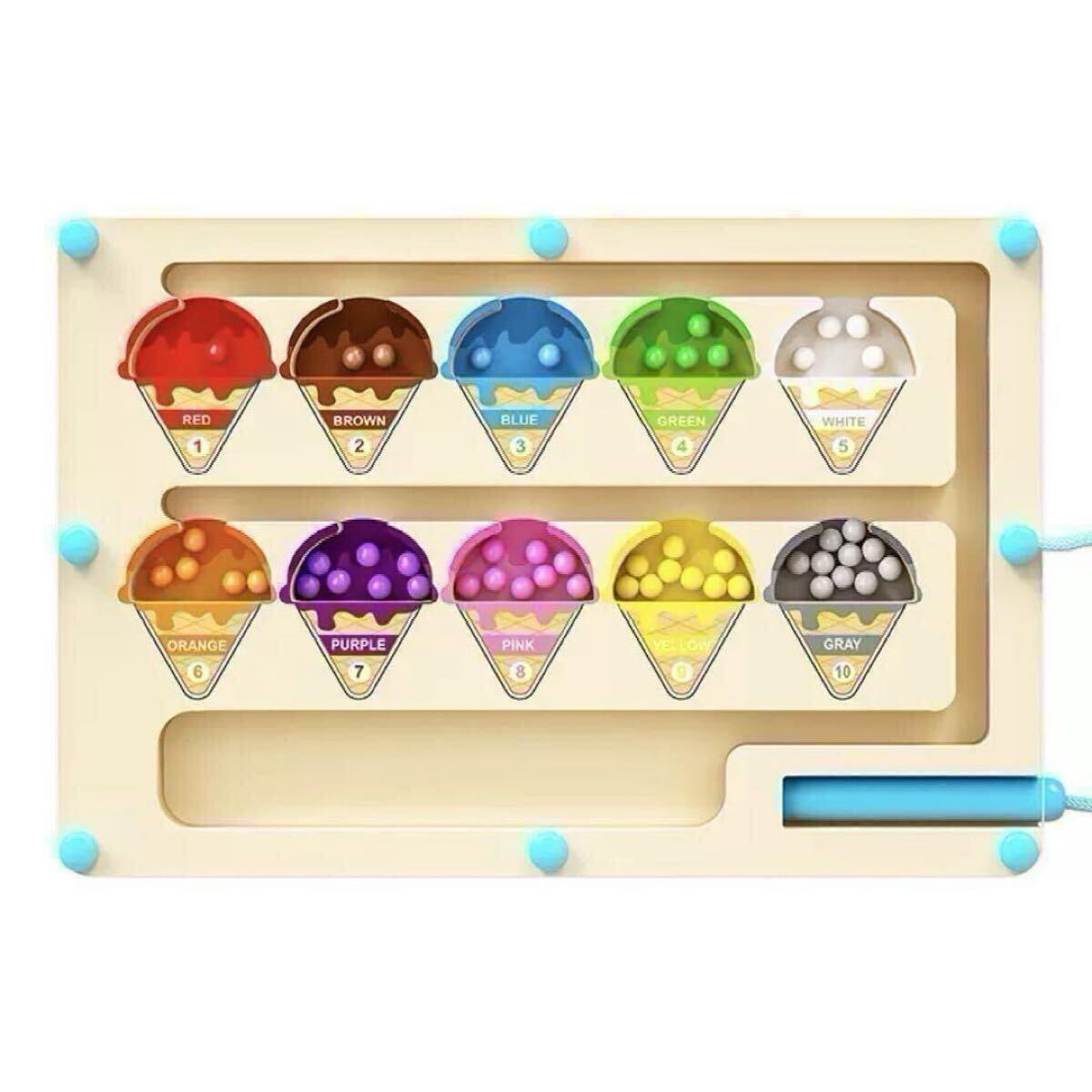 鮮やかな10色のマグネットビーズとアイスクリームの形をした知育玩具