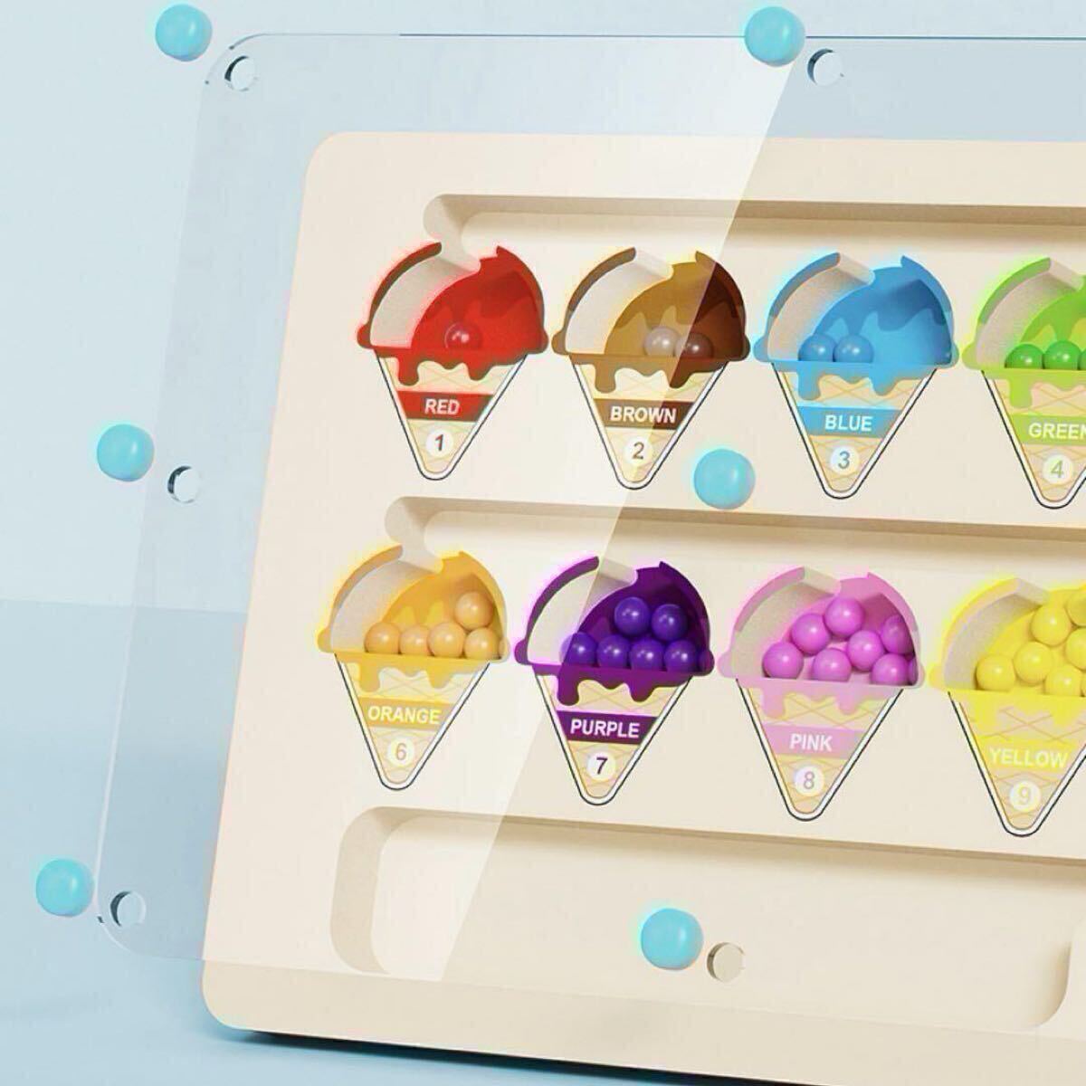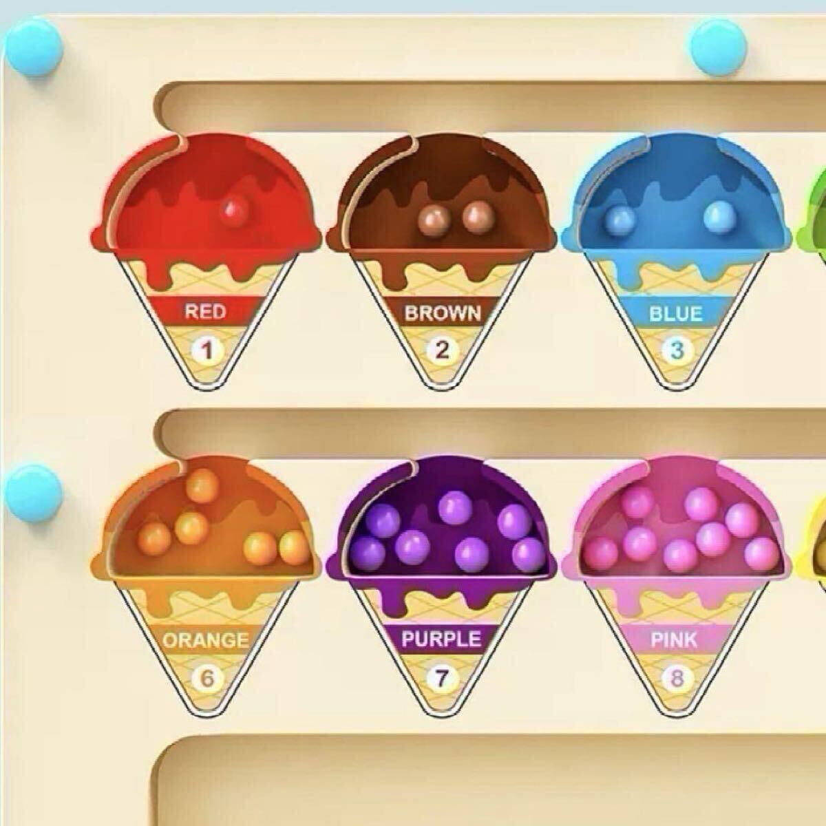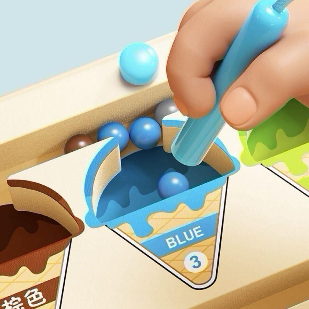 磁気ペンを使用して、対応する色のアイスクリームに到達するように磁気ビーズを引っ張ります。遊びを通して、子供たちは色合わせや数を数える練習をしたり、注意力を高めたりしながら学ぶことができます。手先を使う練習にもなり、集中力もUPします!